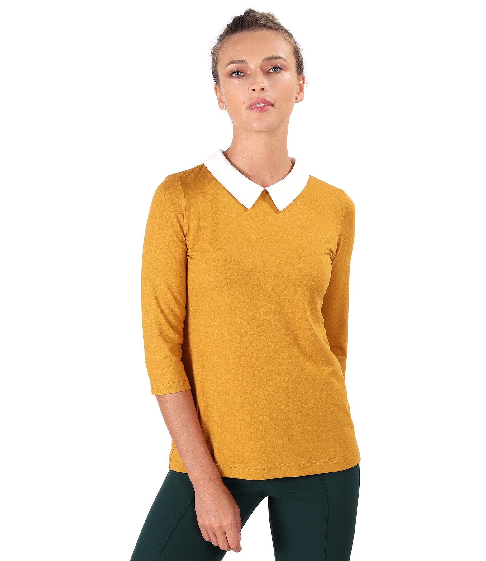 Elastic jersey blouse with pointed collar (Mustard yellow), size