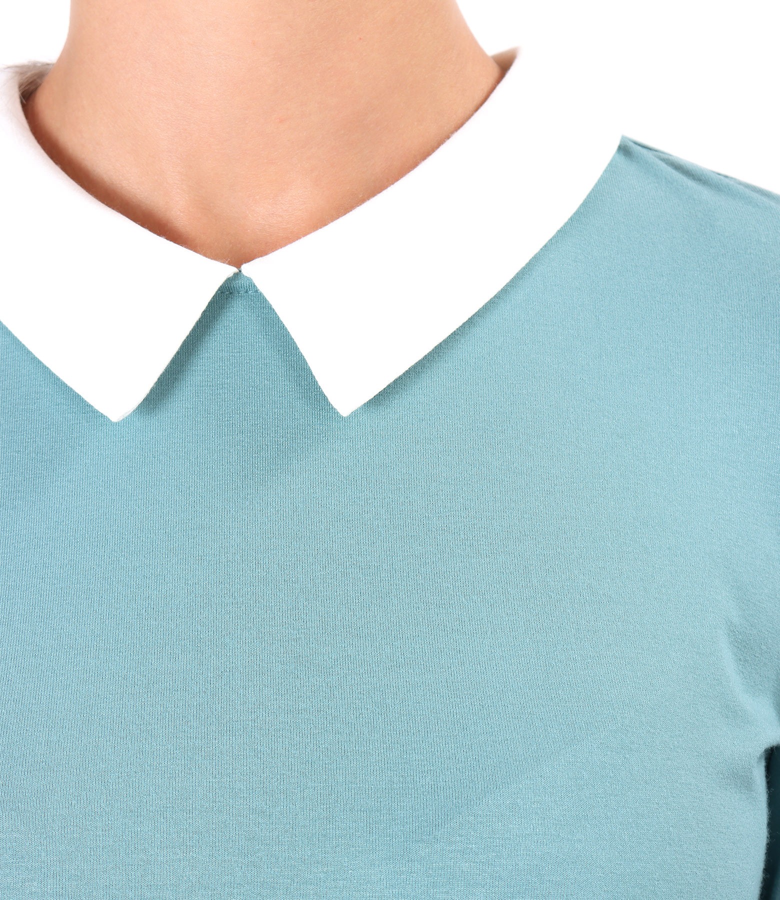 Elastic jersey blouse, with 3/4 sleeves and white pointed collar. Close with a button on the back.