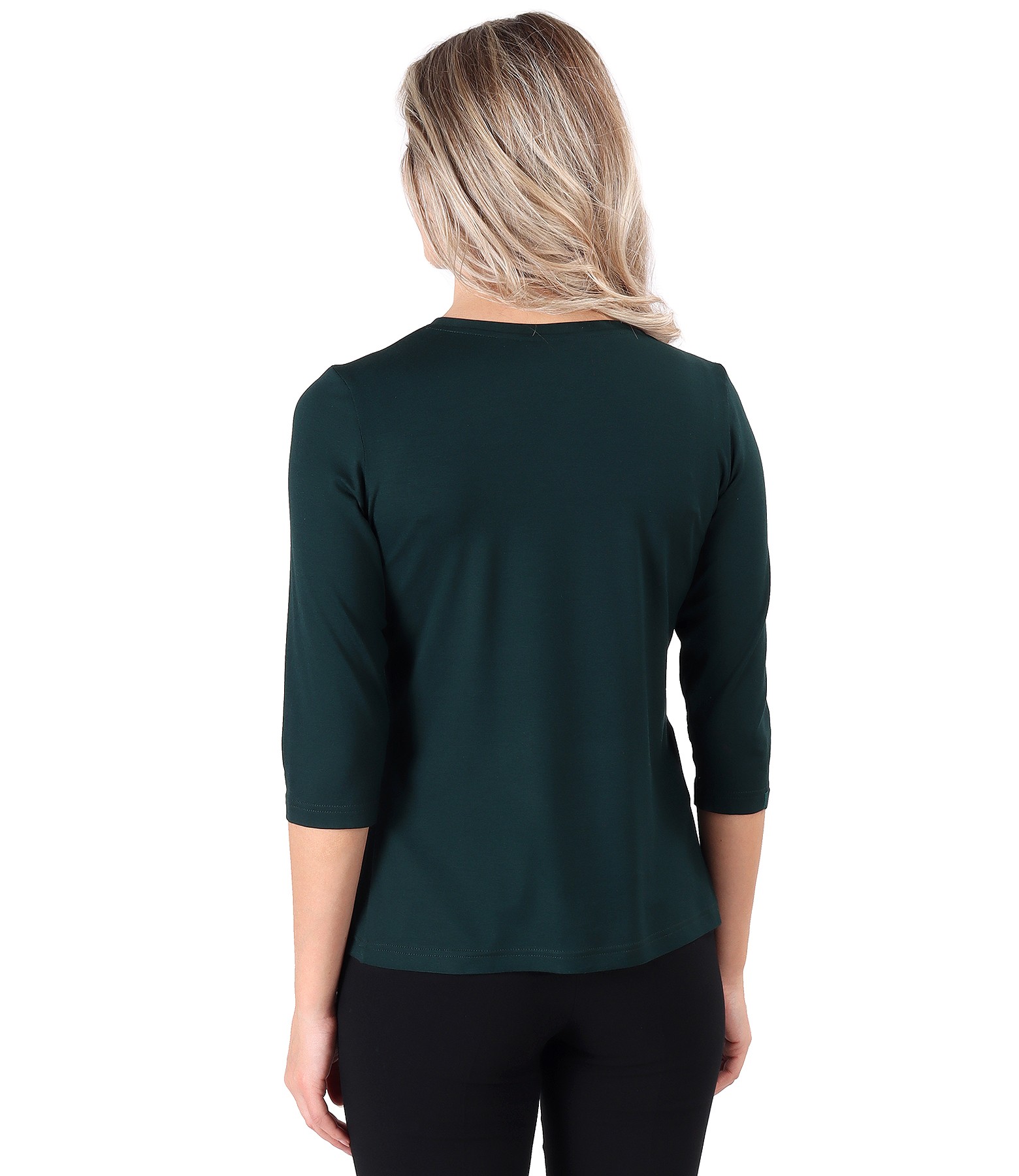 Elastic jersey blouse, with 3/4 sleeves and rips band at the decolletage and sleeve.