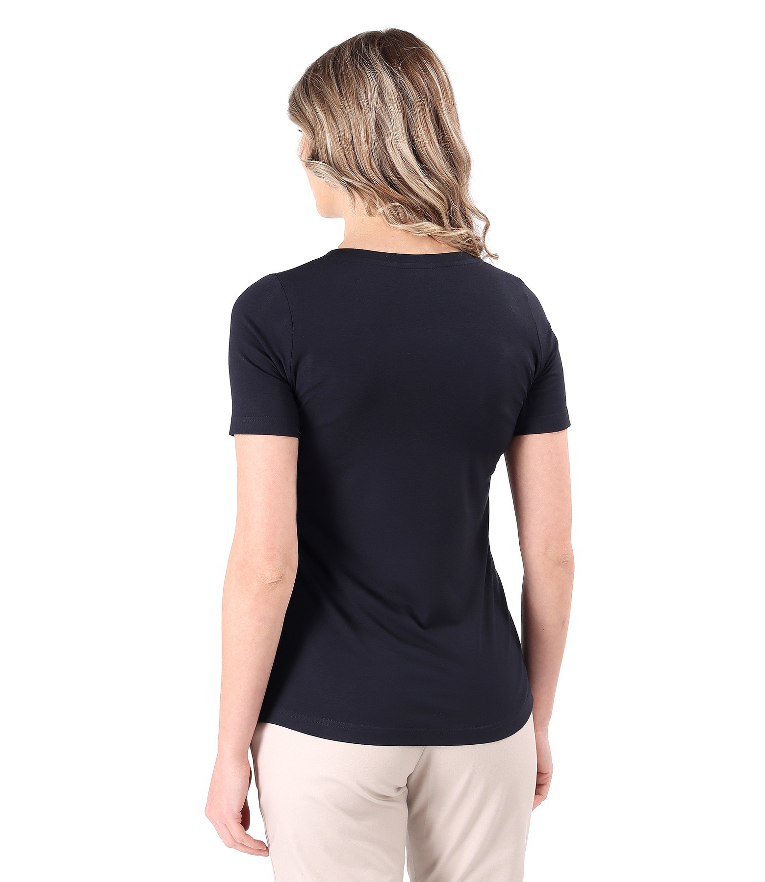 Elastic jersey blouse with rips band at the waist and decorative application in the shape of an anchor, with short sleeves and round neckline.