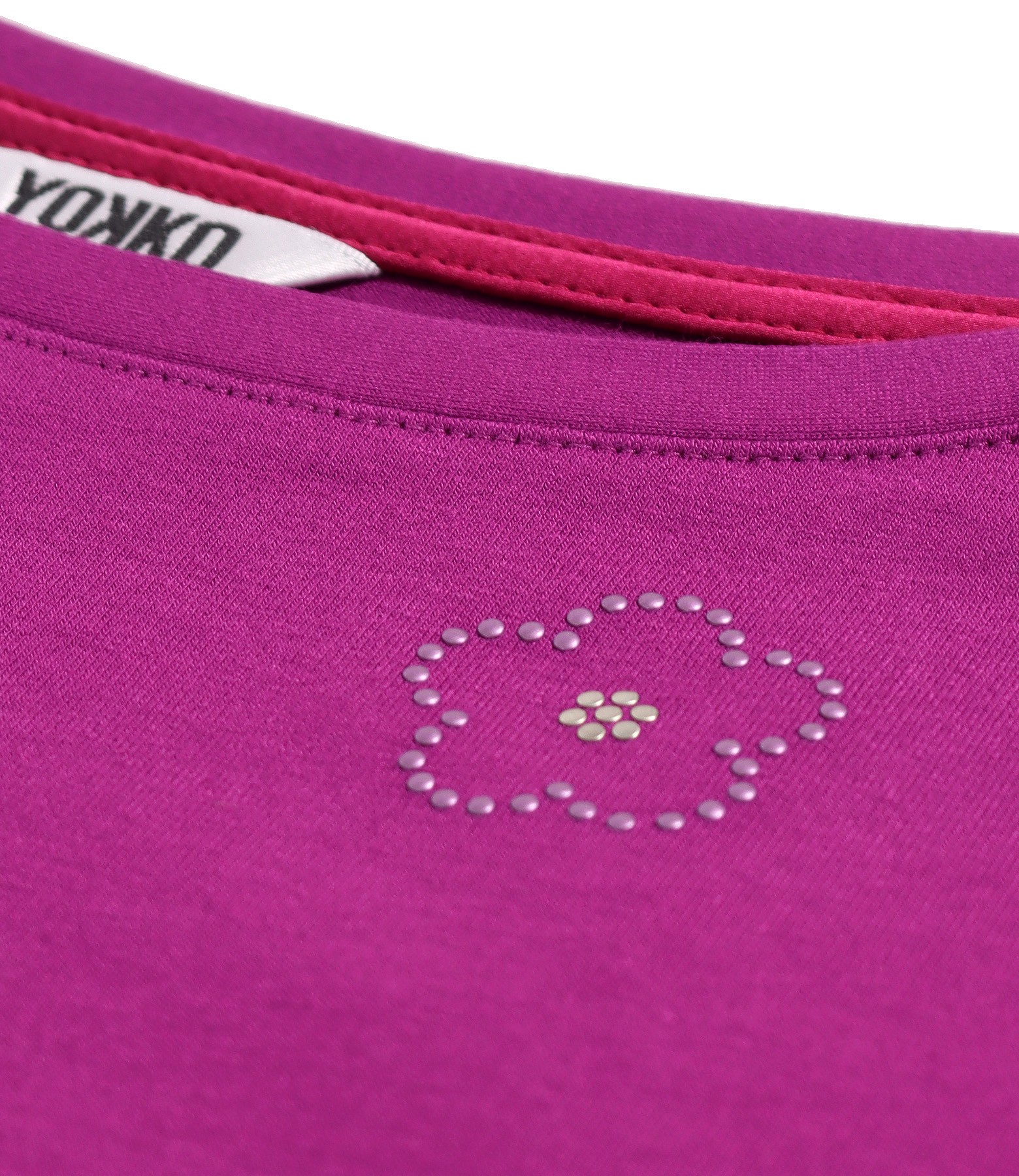 Elastic jersey blouse with short sleeves and round neckline with crystals appliqué.
