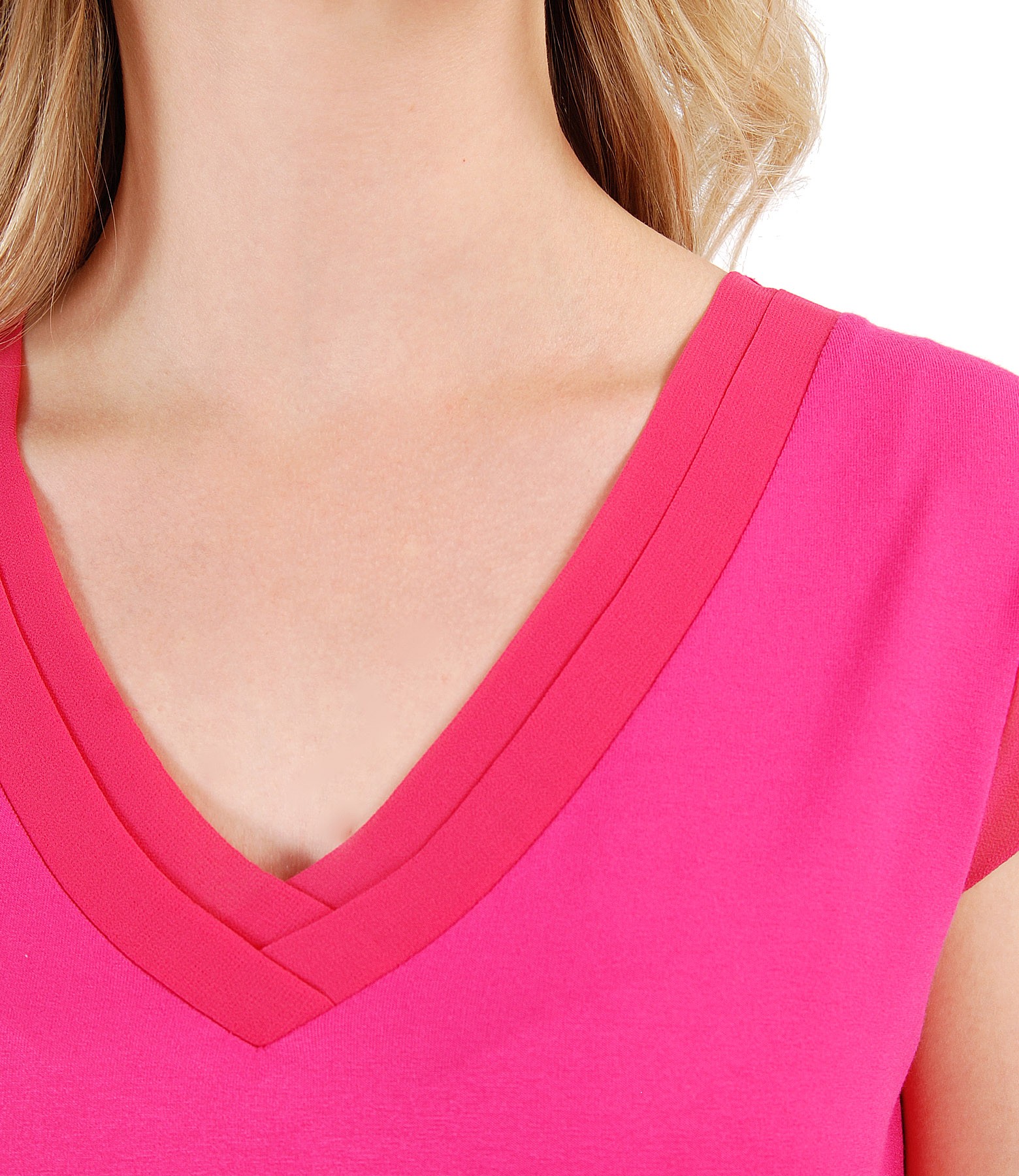 Elastic jersey blouse with V low-cut neck, with double trim and veil fins.