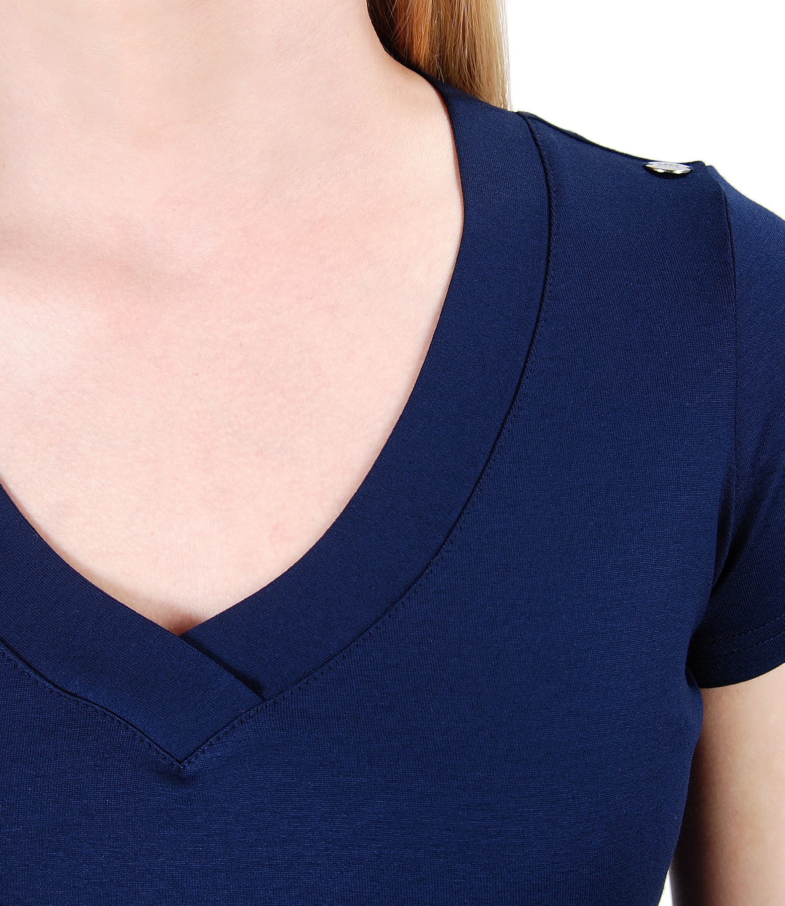 Elastic jersey blouse with V decolletage (Dark blue), size