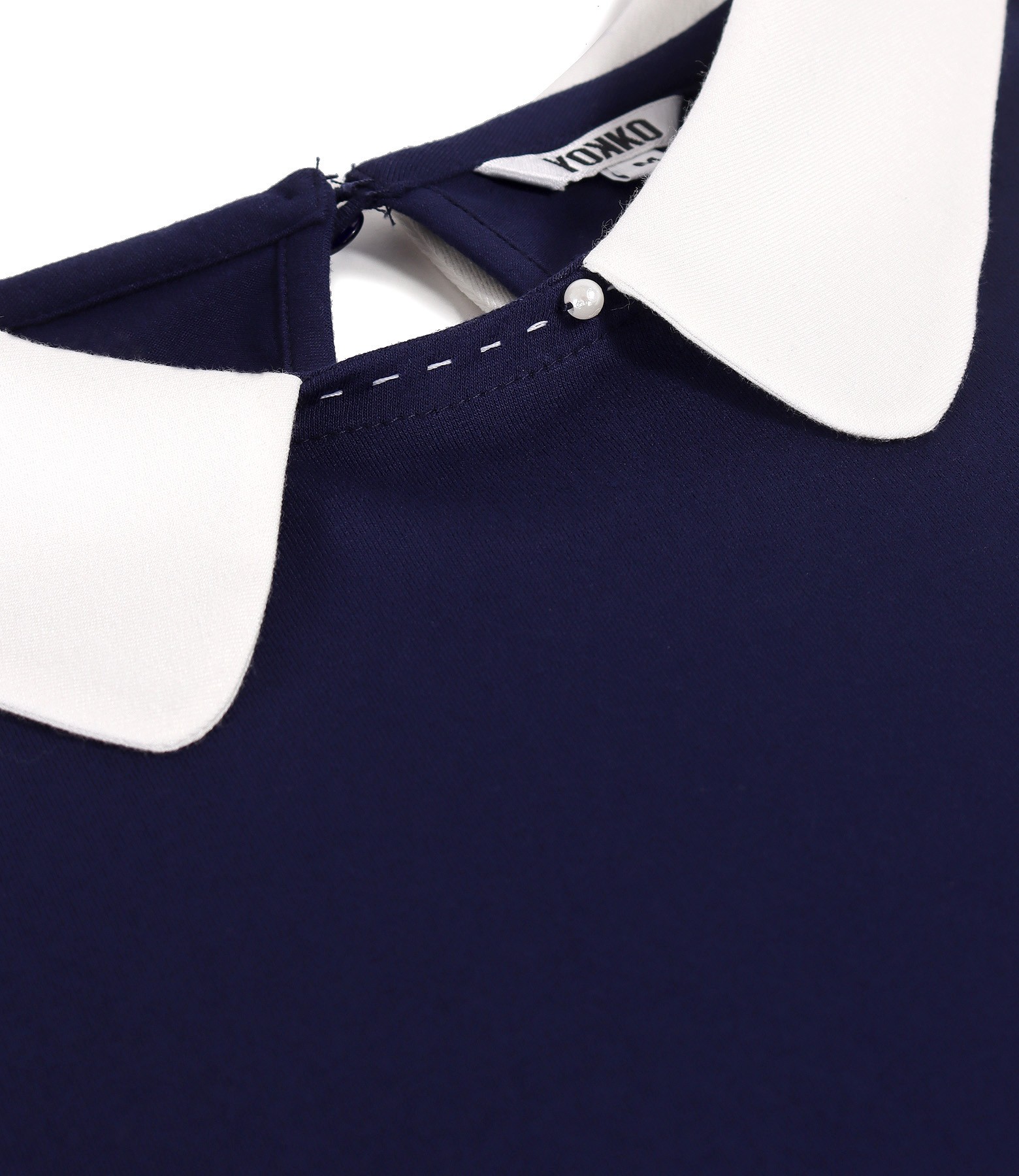 Elastic jersey blouse with white collar (Navy Blue), size