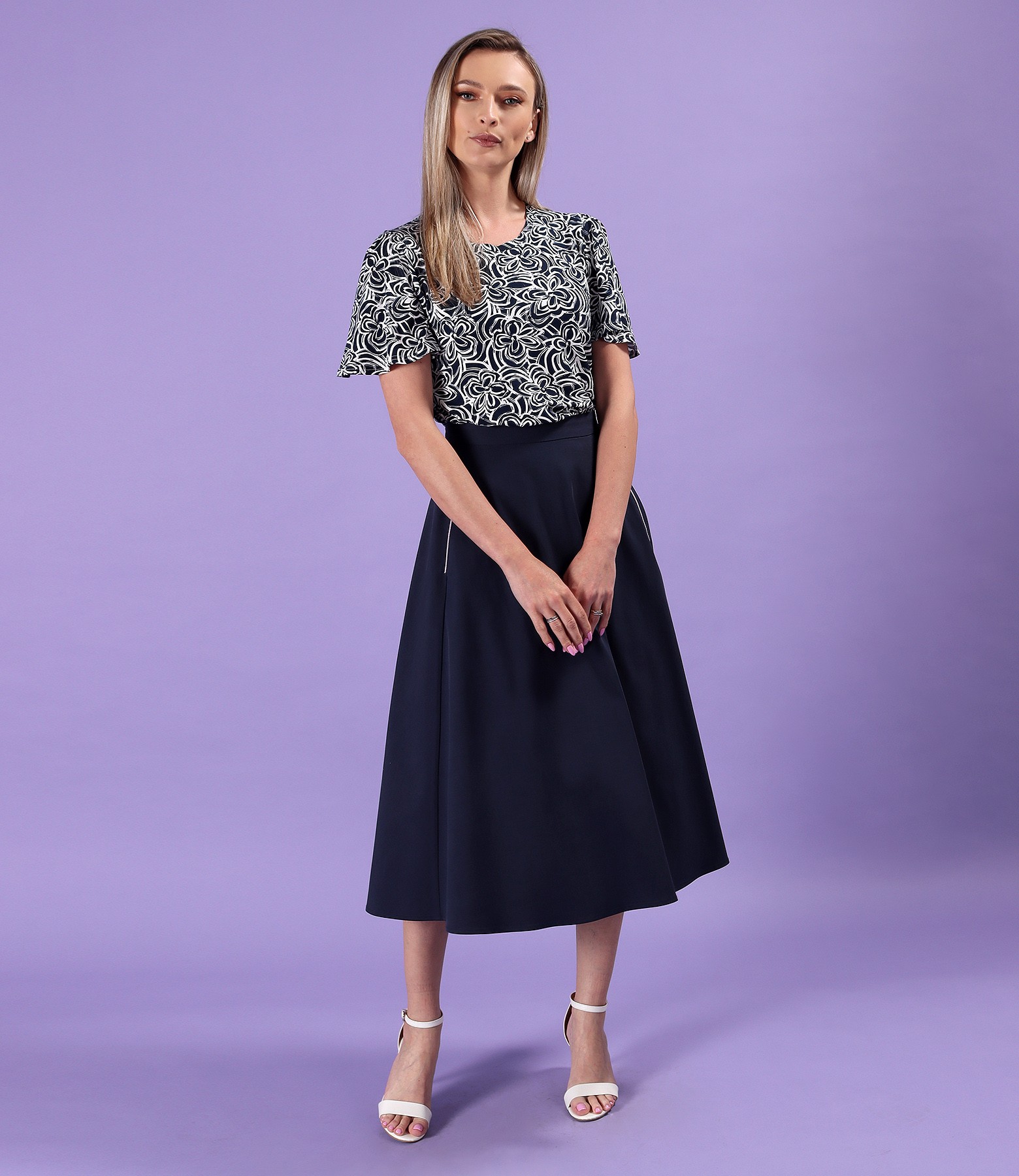 Elastic jersey blouse with wide sleeves and decorative band (Print), size
