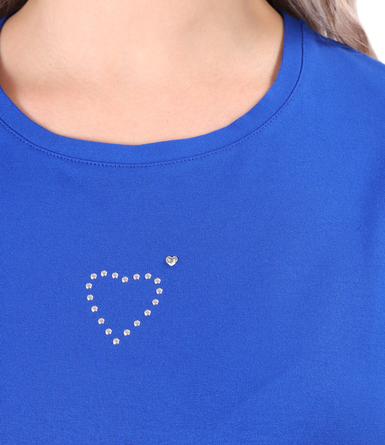 Elastic jersey casual dress, unlined, with round decolletage, short sleeves and decorative application in the shape of a heart on the face.