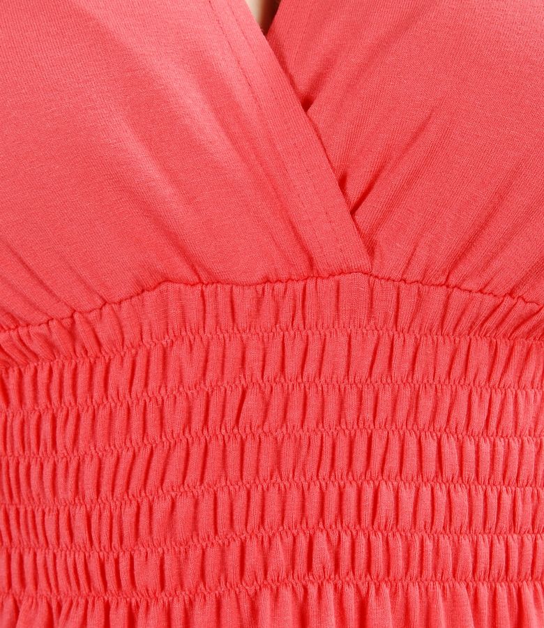 Elastic jersey dress with overlapped chest (Coral), size