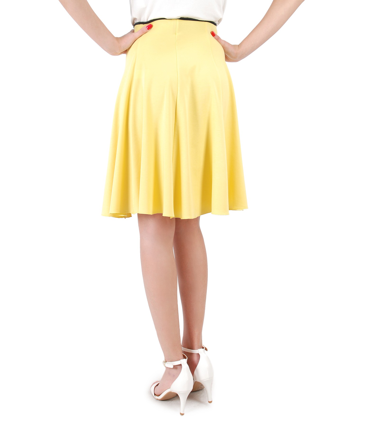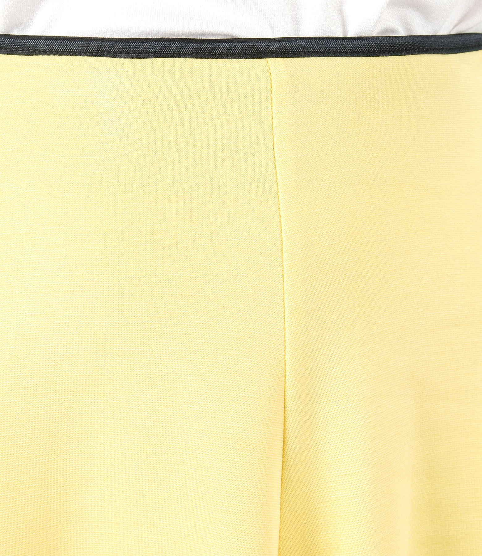 Elastic jersey flaring skirt, with elasticized waist and unfinished look at edge.