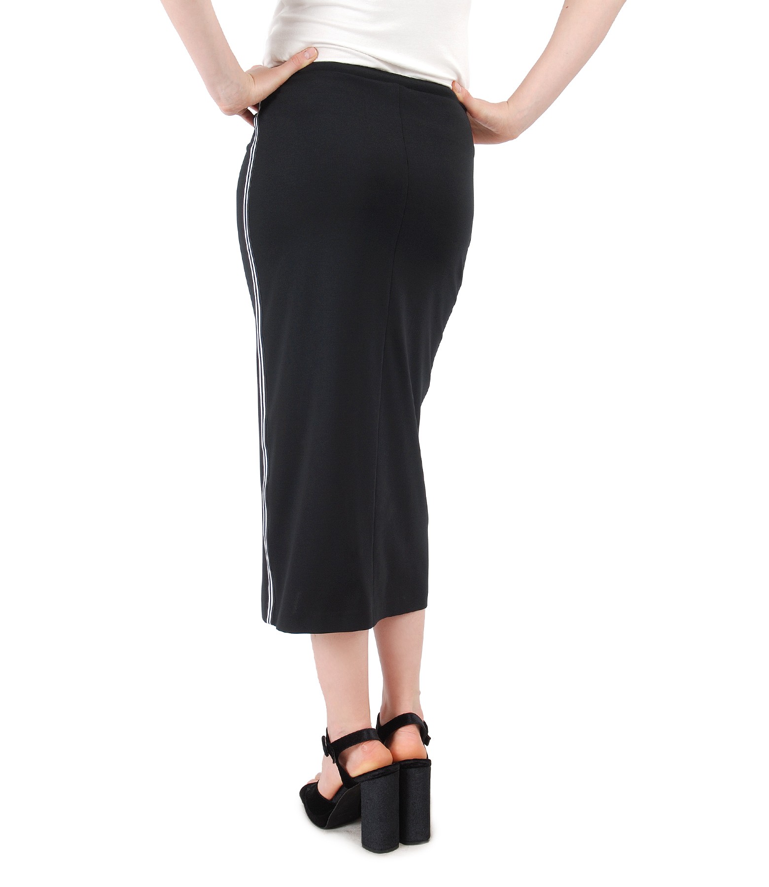 Elastic jersey midi skirt with side stripes trim (Black), size