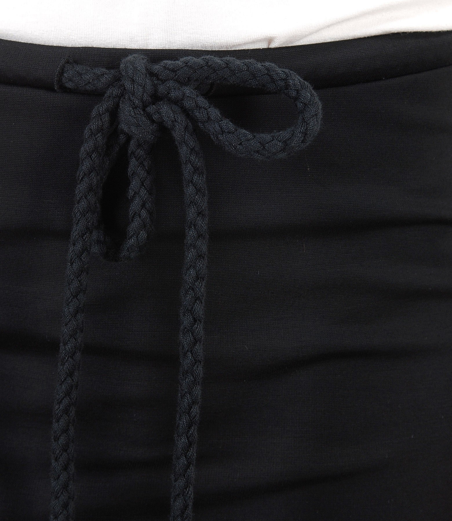 Uni elastic jersey midi skirt, unlined, with side stripes trim and cord.