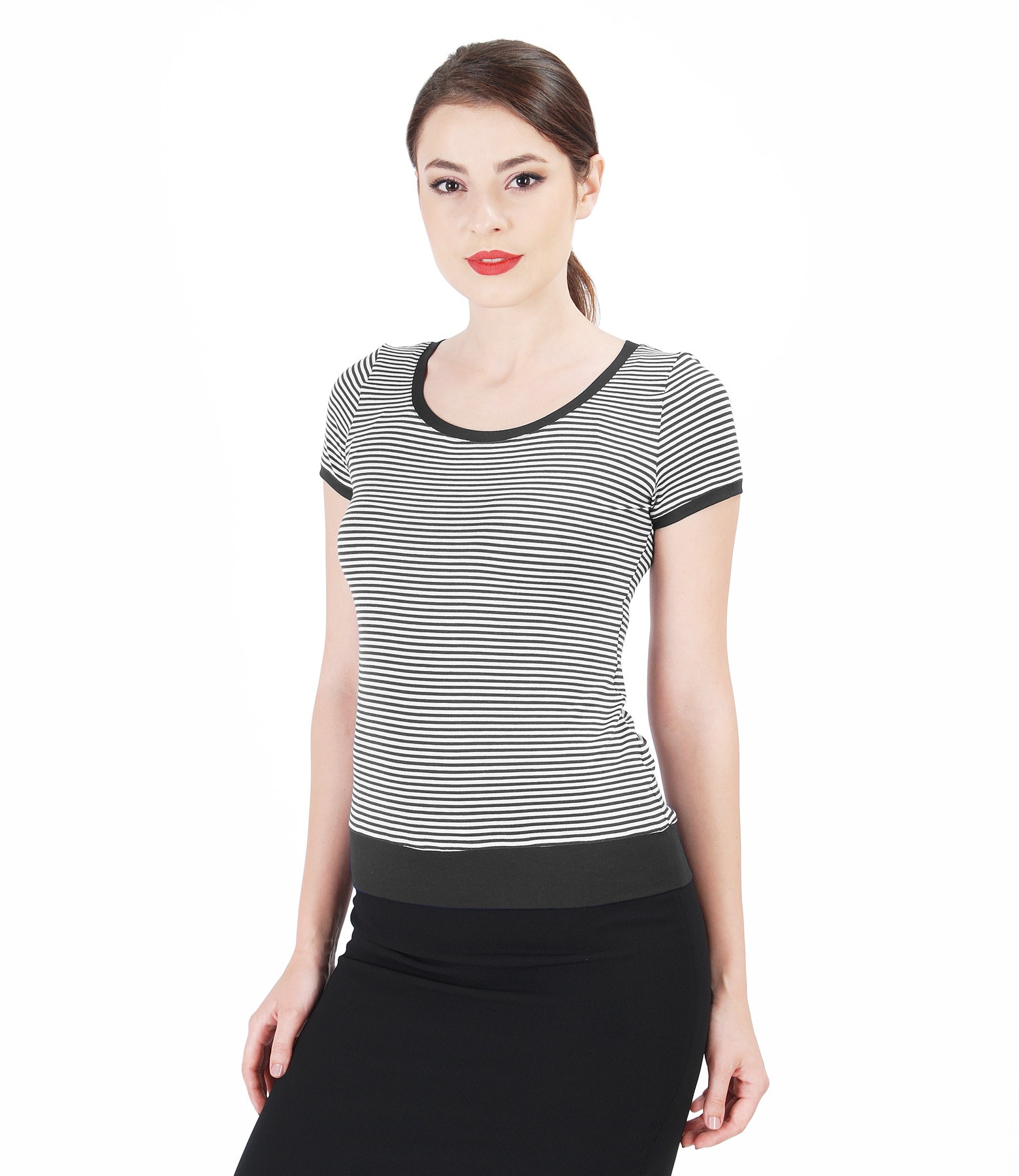 Elastic jersey t-shirt with trim (Black), size