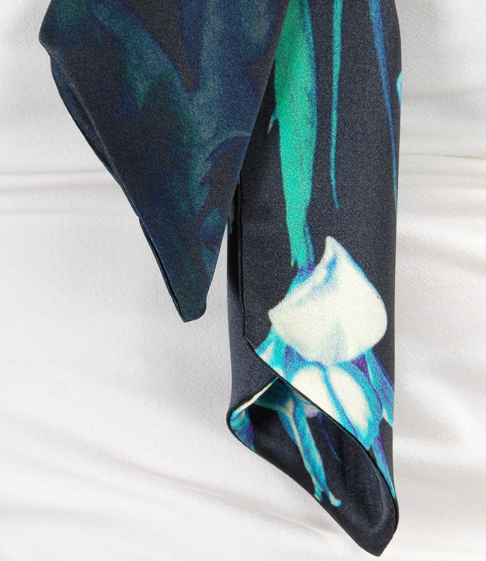 Elastic natural silk scarf, with floral print, rectangular shape.