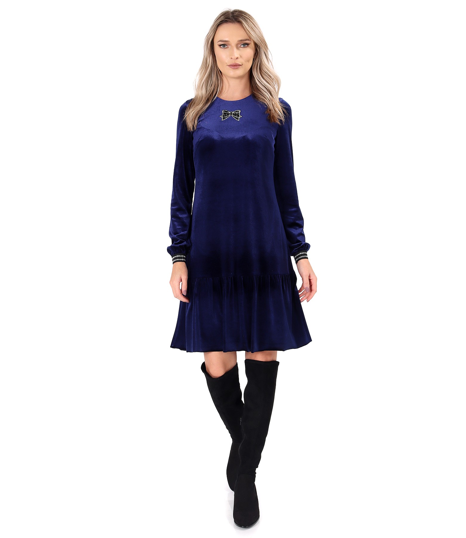 Elastic velvet dress with crystal at the neckline (Royal Blue), size