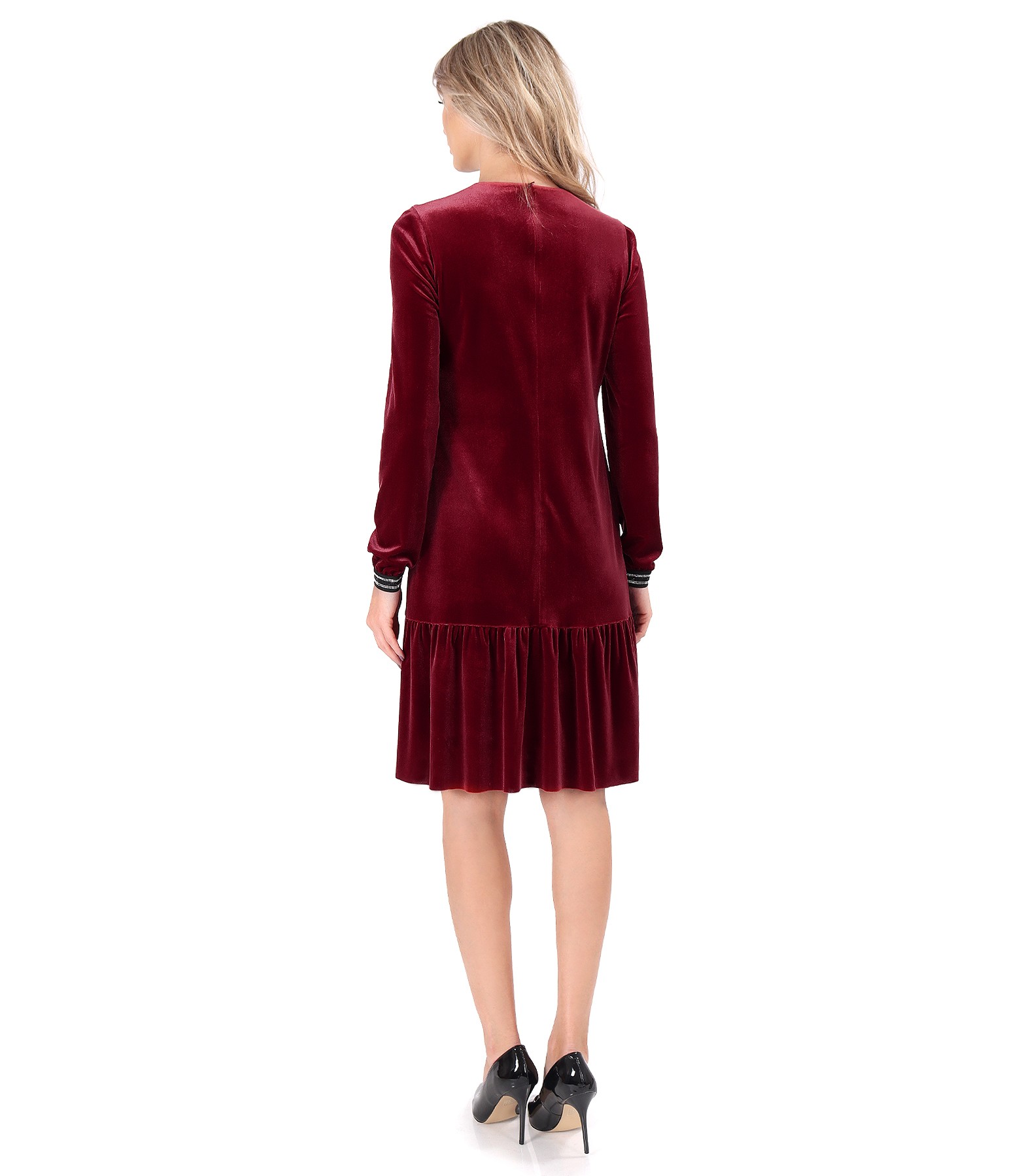 Elastic velvet dress with crystal at the neckline (Garnet), size