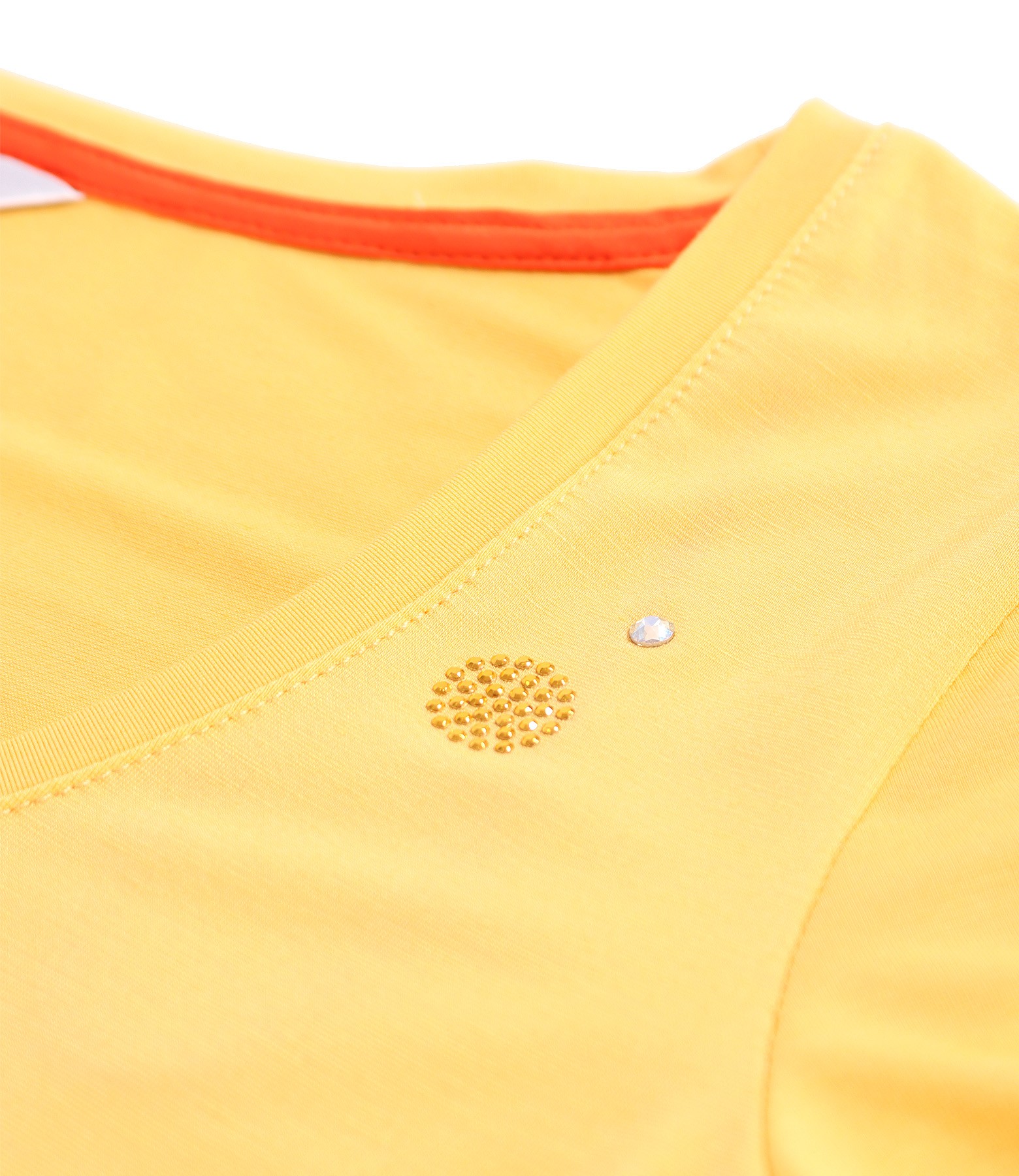 Blouse made of elastic viscose jersey, with short sleeves and round neckline.