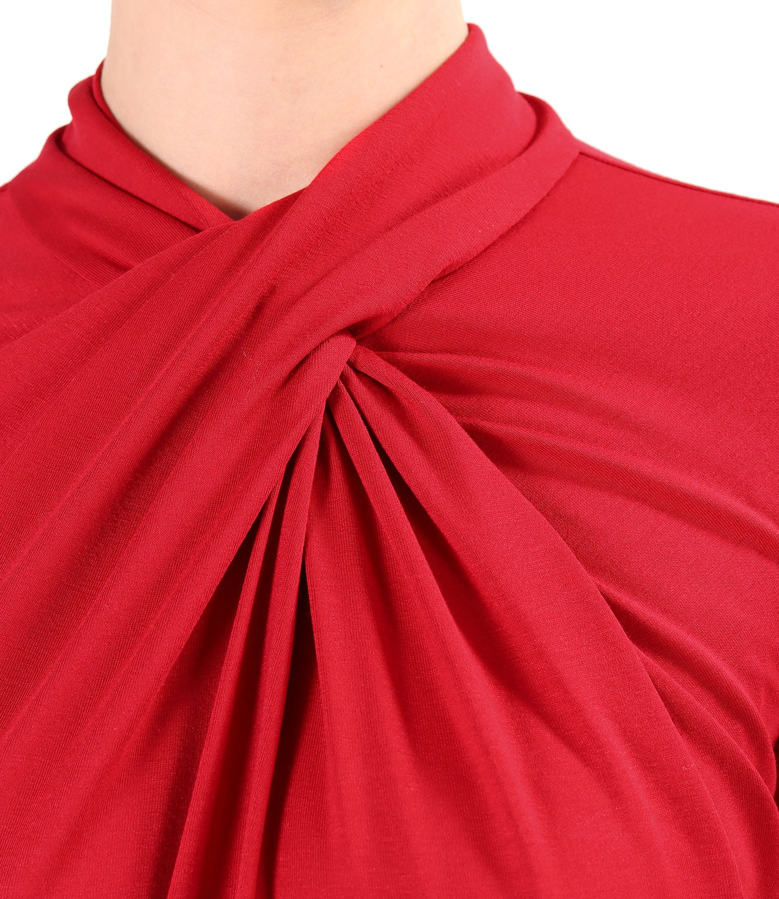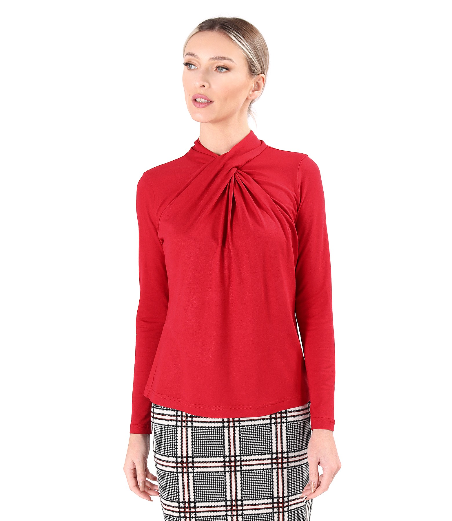 Elastic viscose jersey blouse with pleats at the neckline (Red), size