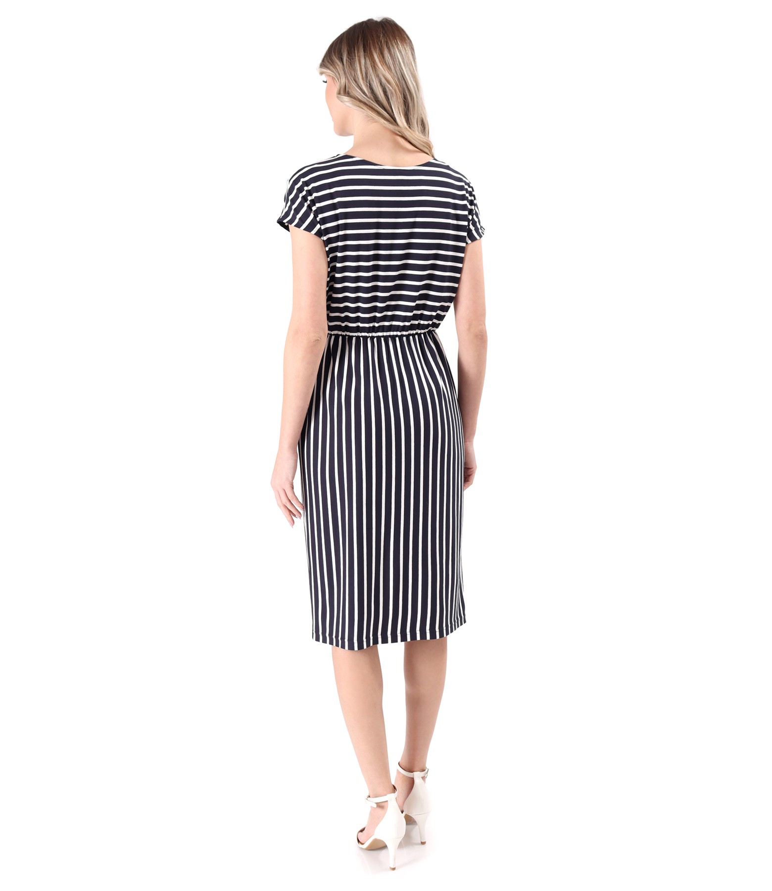 Elastic viscose jersey dress with stripes (Navy Blue), size