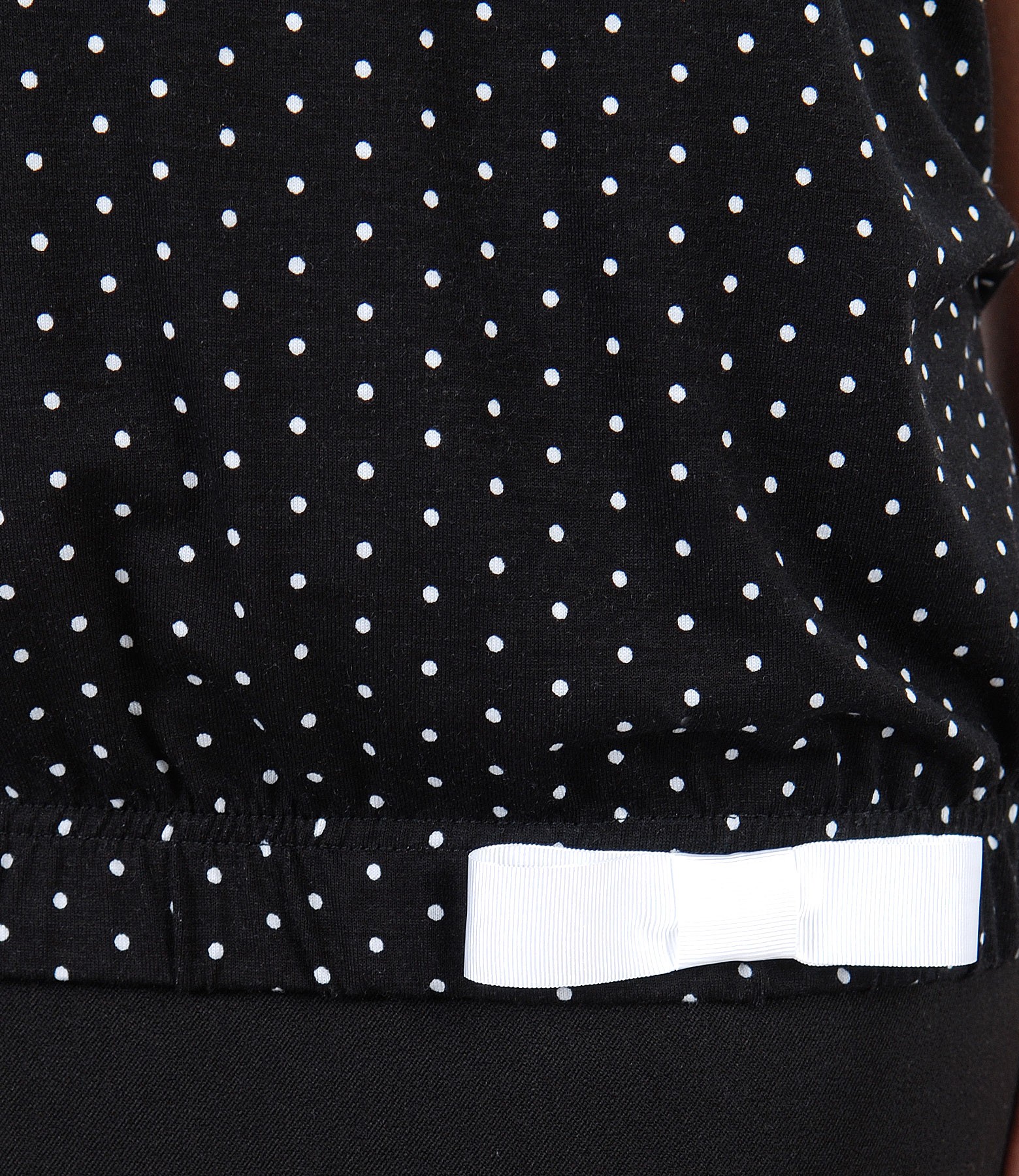 Elegant blouse made of printed elastic jersey, with short sleeves and elastic on edge. Have no closing system.