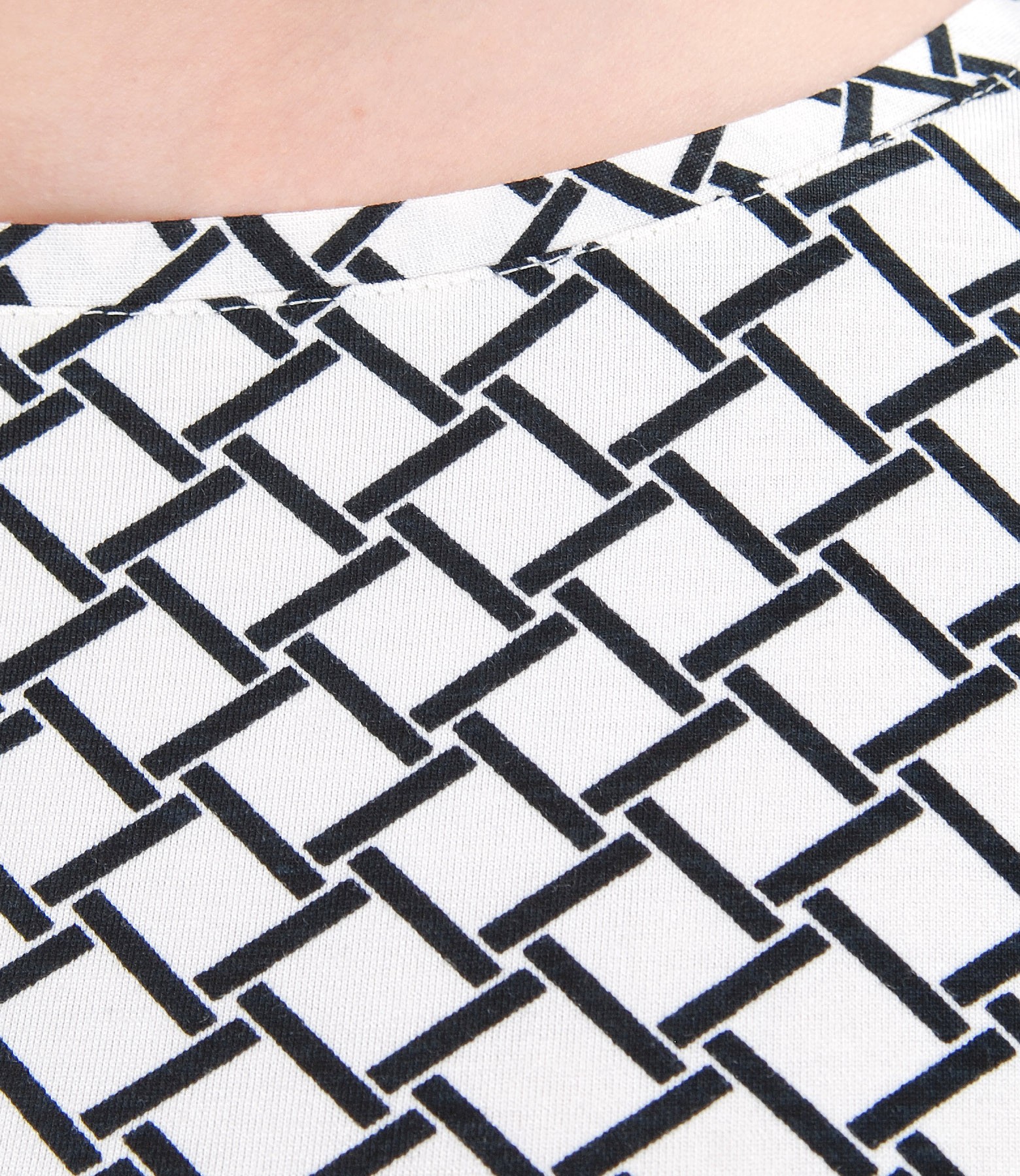 Elegant blouse made of elastic jersey, with geometric print, with 3/4 sleeves and decorative flaps. Have no closing system.