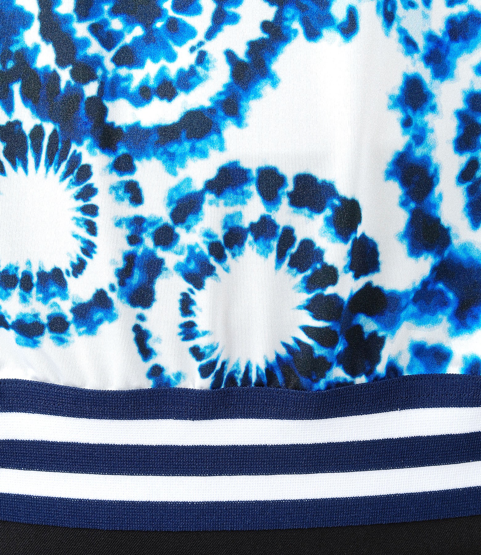 Elegant blouse made of printed jersey, with round low-cut neck, draping sleeves and multi-color elastic trim at edges.