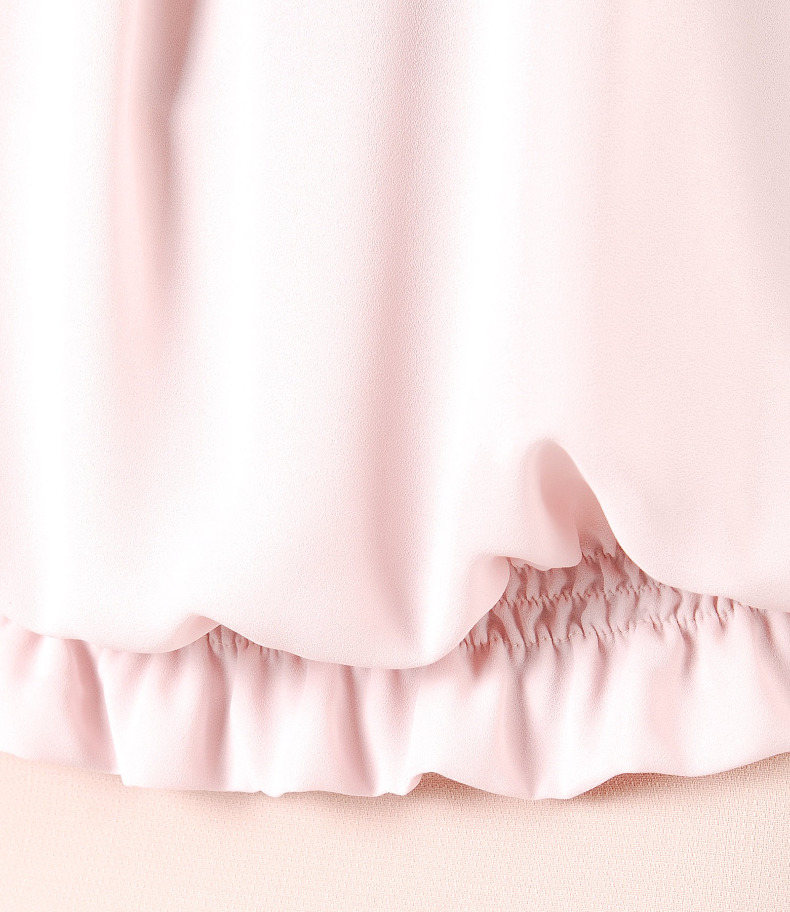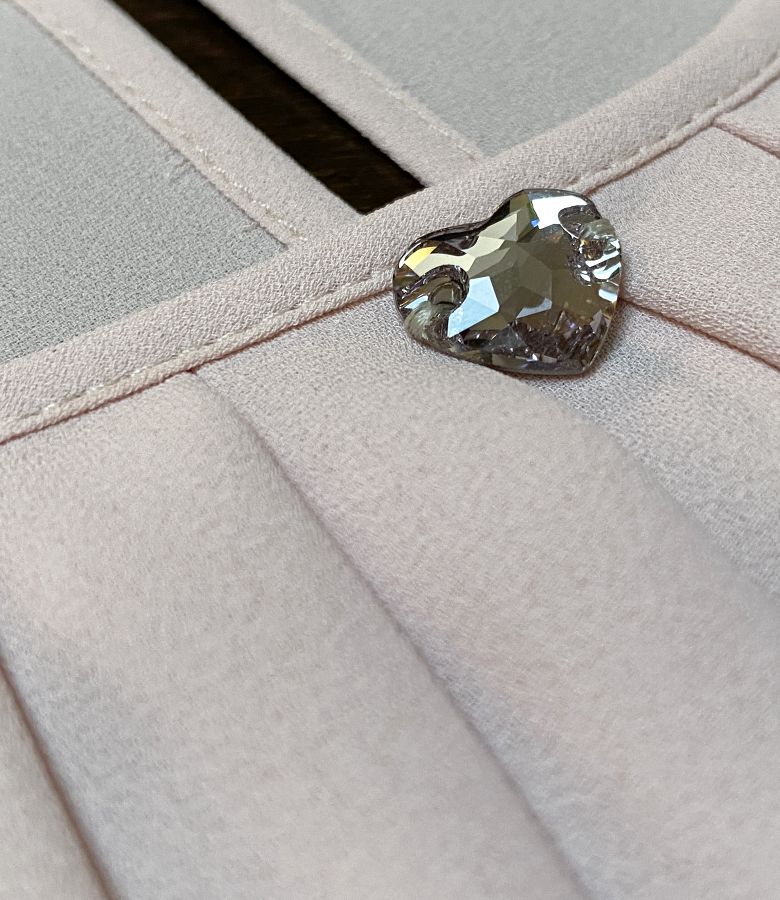 Elegant blouse with front folds, short sleeves, elastic on edges, embellished with crystals on decolletage. Closes with a button on the middle back.