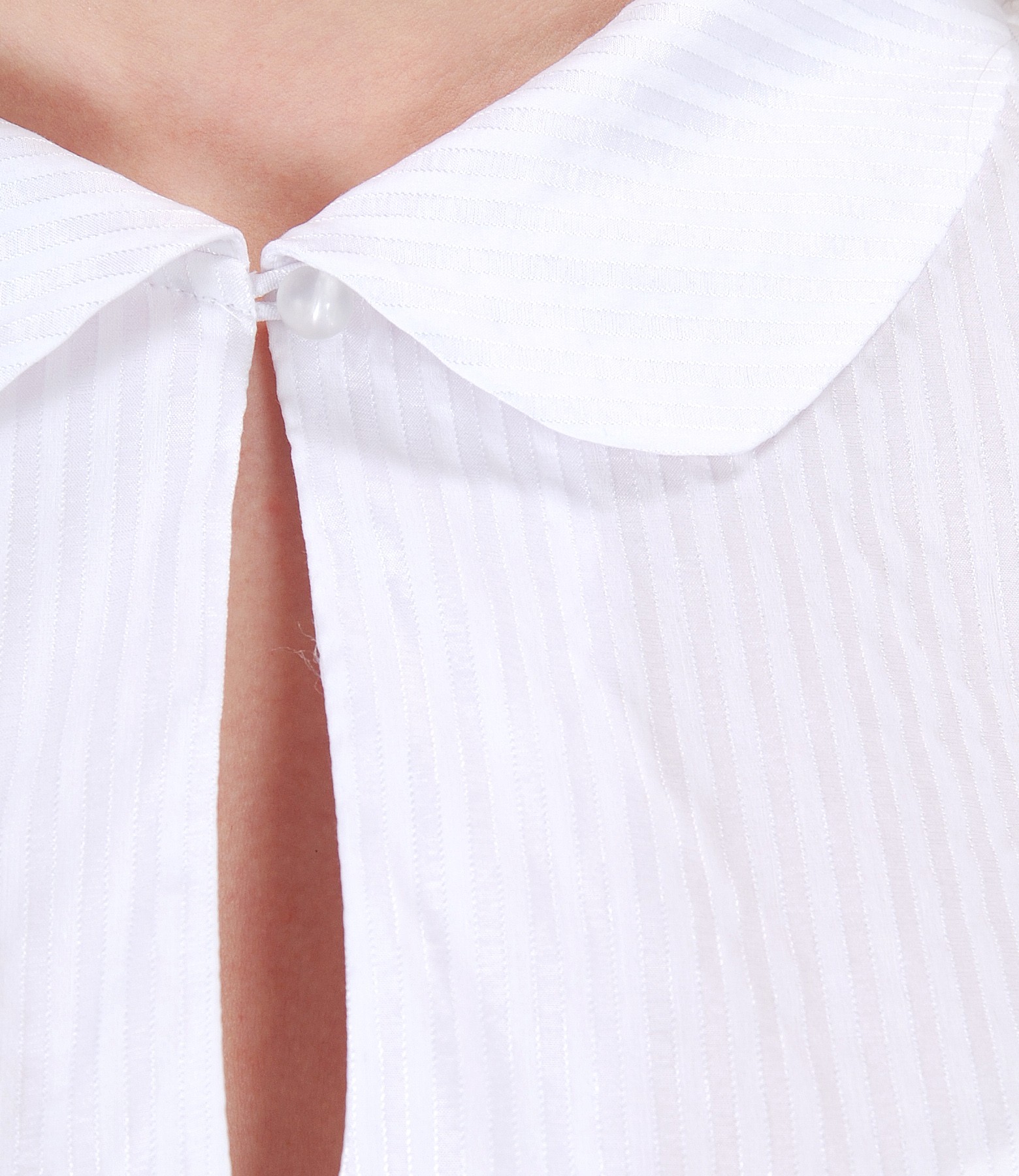 Elegant blouse with long sleeves with folds at edge and round collar. Closes with a front button.