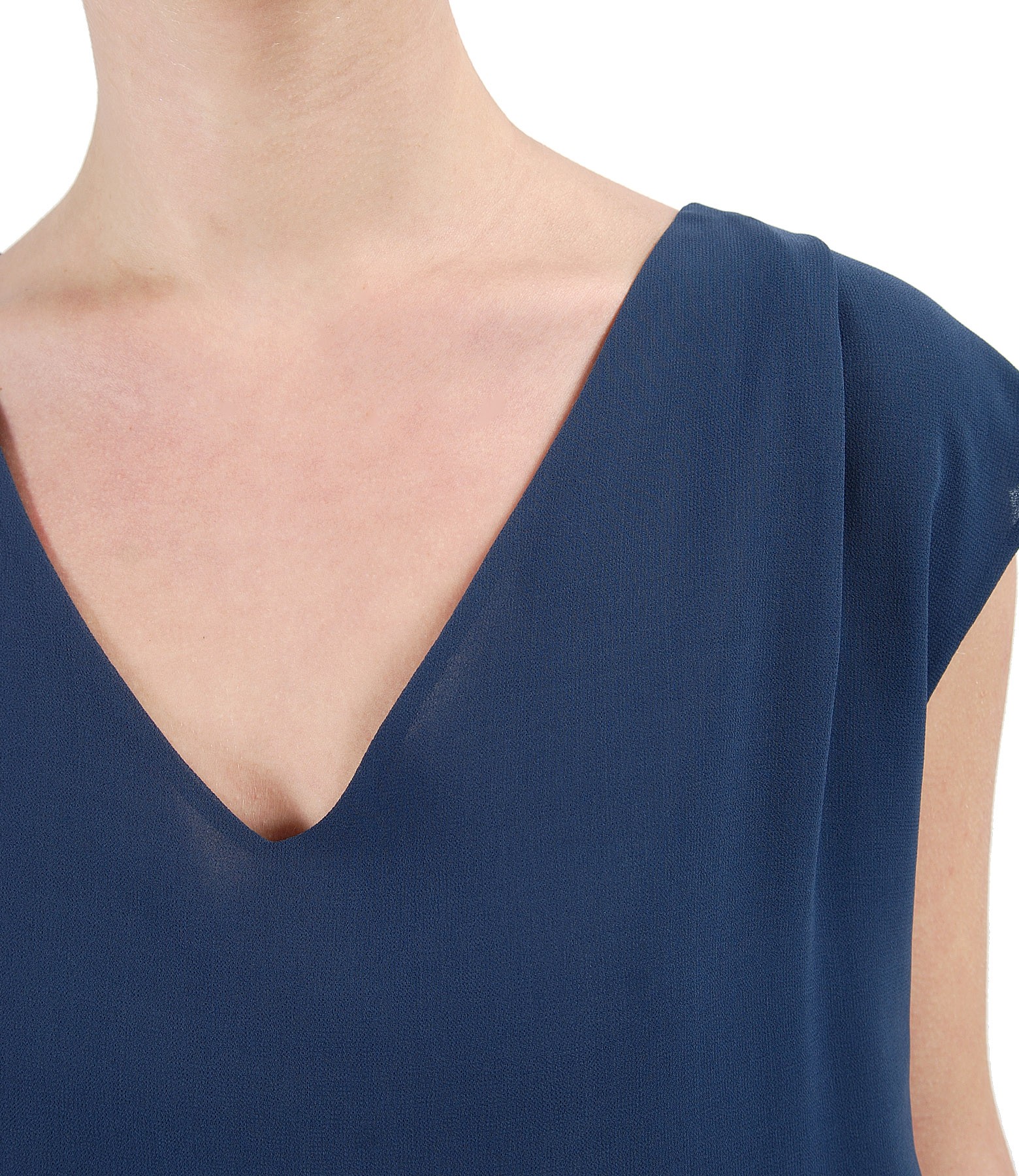 Elegant blouse with veil front, elastic jersey back and V low-cut neck.