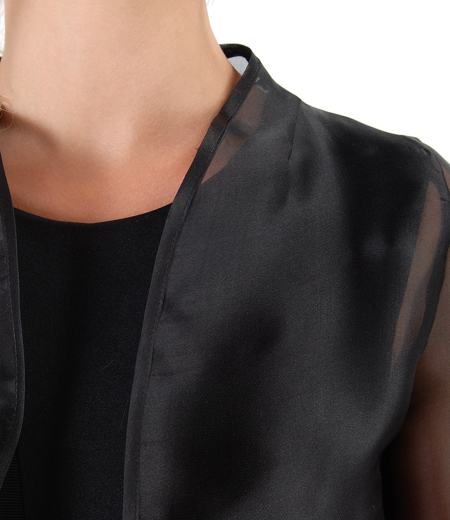 Elegant bolero made of organza silk, with 3/4 sleeves. Closes with two front strings.