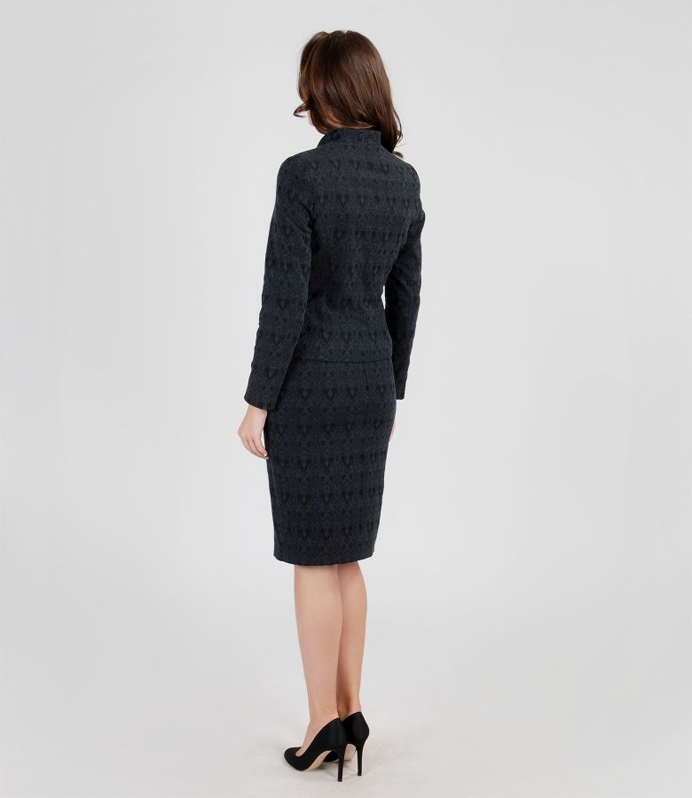Elegant elastic cotton brocade jacket with side gussets on front and back. Closes to the bust with 4 hooks on front.