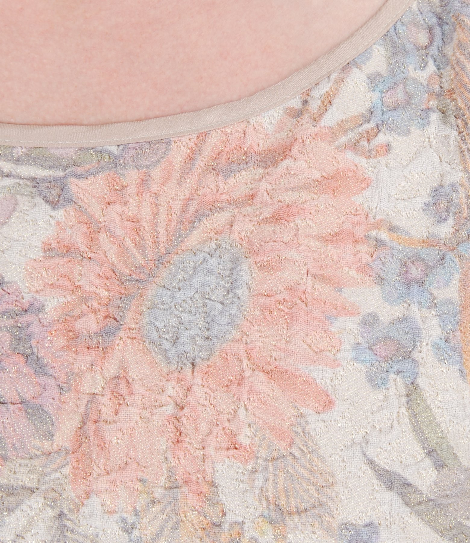 Elegant dress from multicolored elastic brocade with metallic thread (Print), size