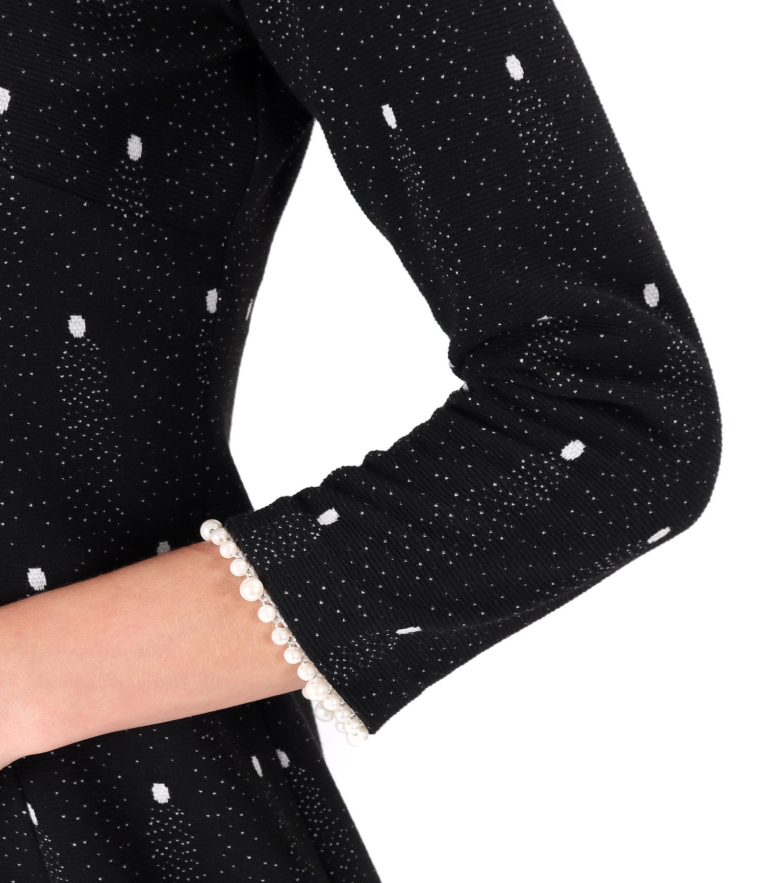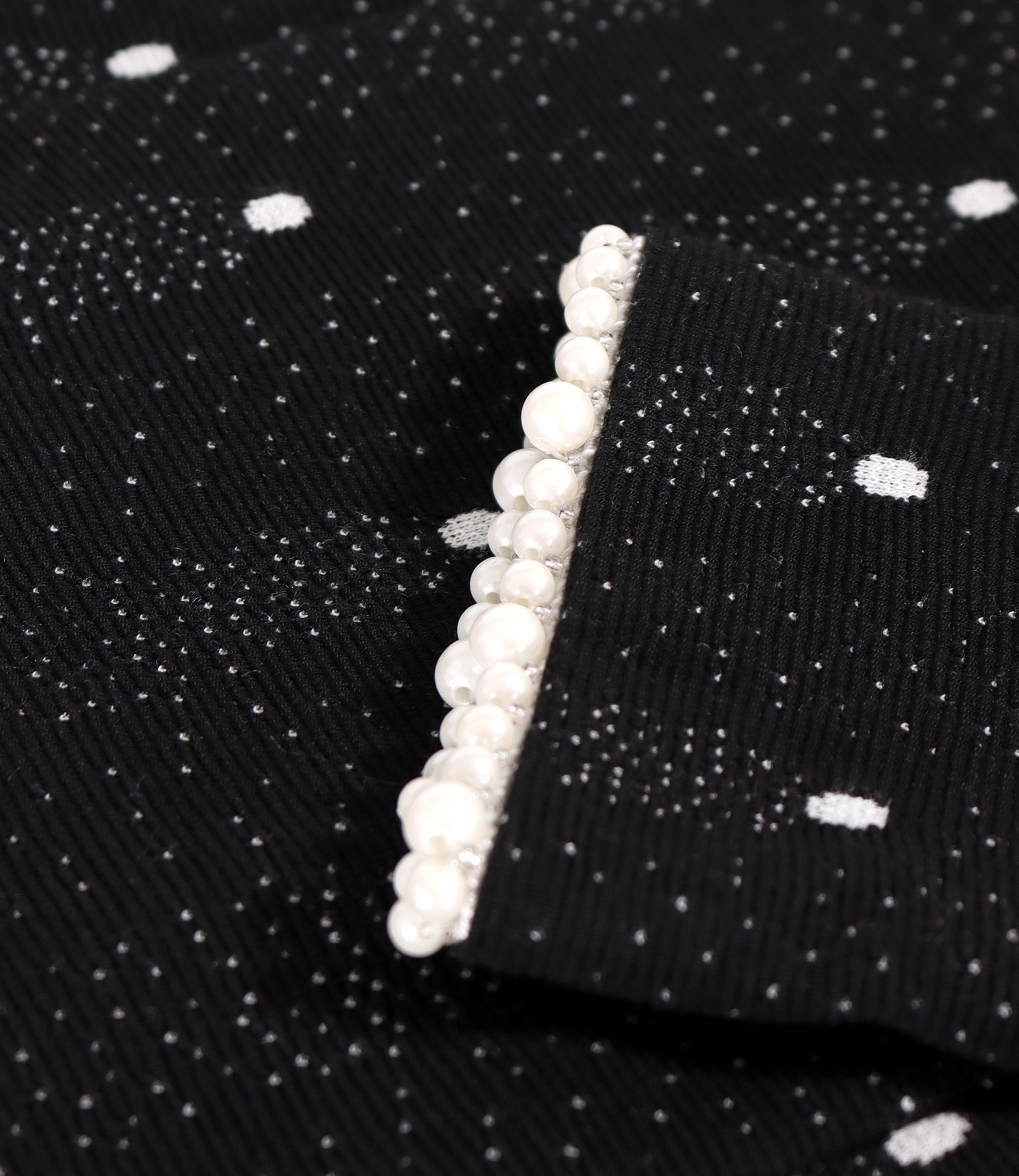 Elegant dress in thick elastic jersey with pearls on the sleeves (Black), size