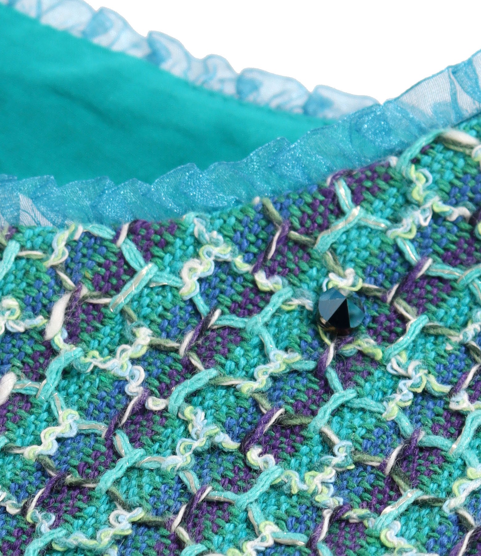 Elegant dress made of cotton loops, padded with viscose, short sleeves and round neckline with applied lace. It closes with a hidden zipper in the middle of the back.