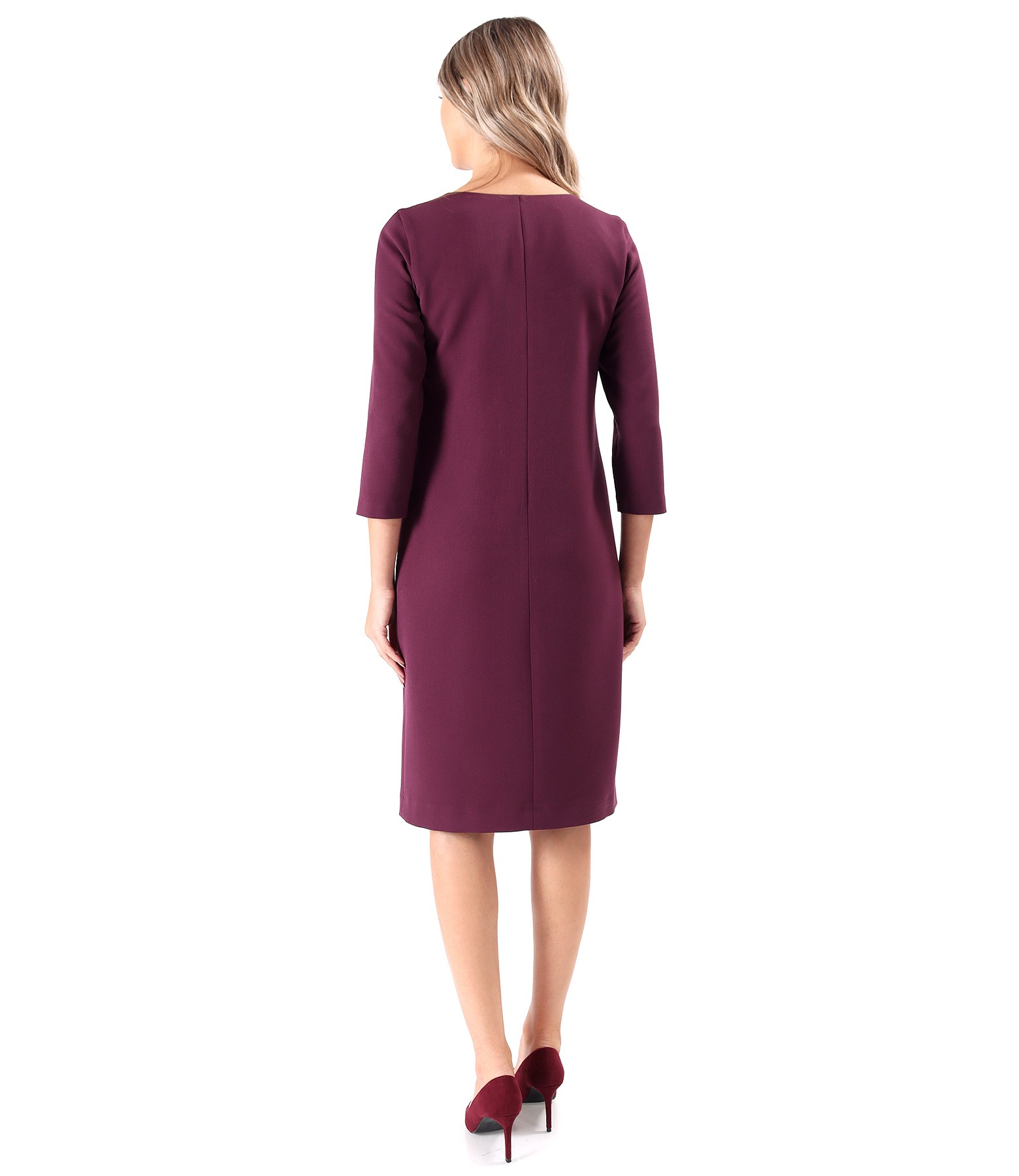 Elegant dress made of elastic fabric, with decorative golden zipper on the neckline and 3/4 sleeves.