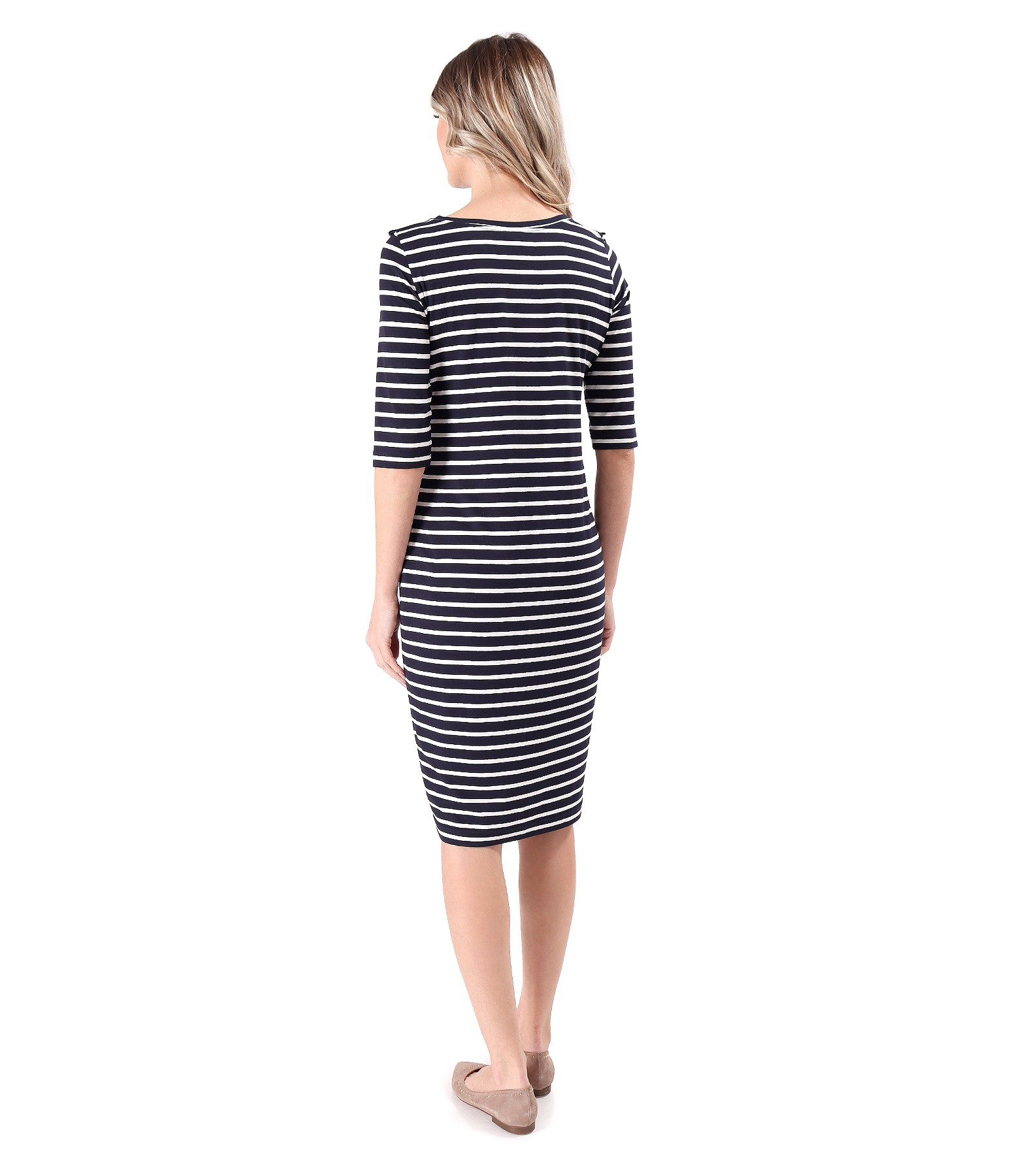 Elegant dress made of elastic viscose jersey with stripes (Navy Blue), size