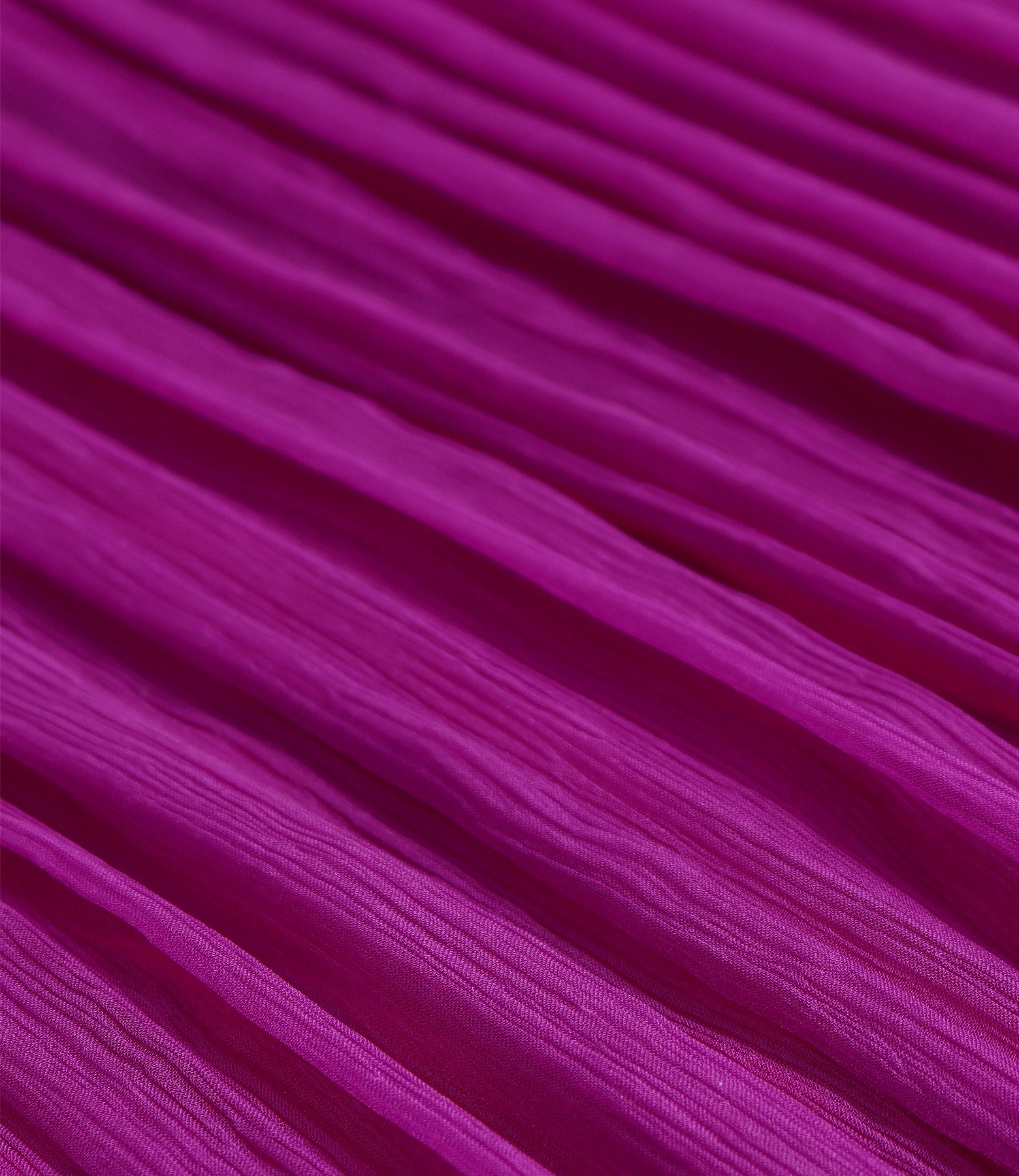 Elegant dress made of natural silk veil, doubled with satin, fringed on the bust and long sleeves wrinkled with cuffs with 2 buttons, and with pearl sewn at the waist. It closes with a hidden zipper on the left side.