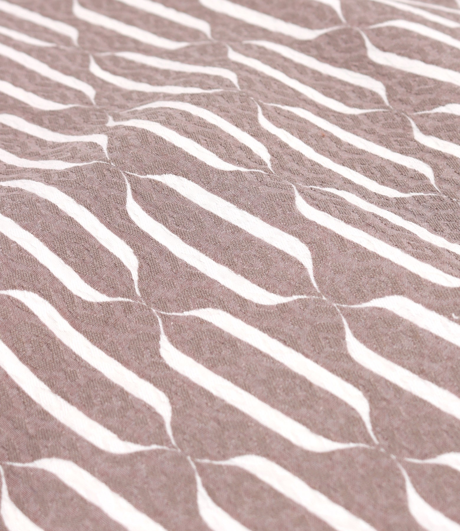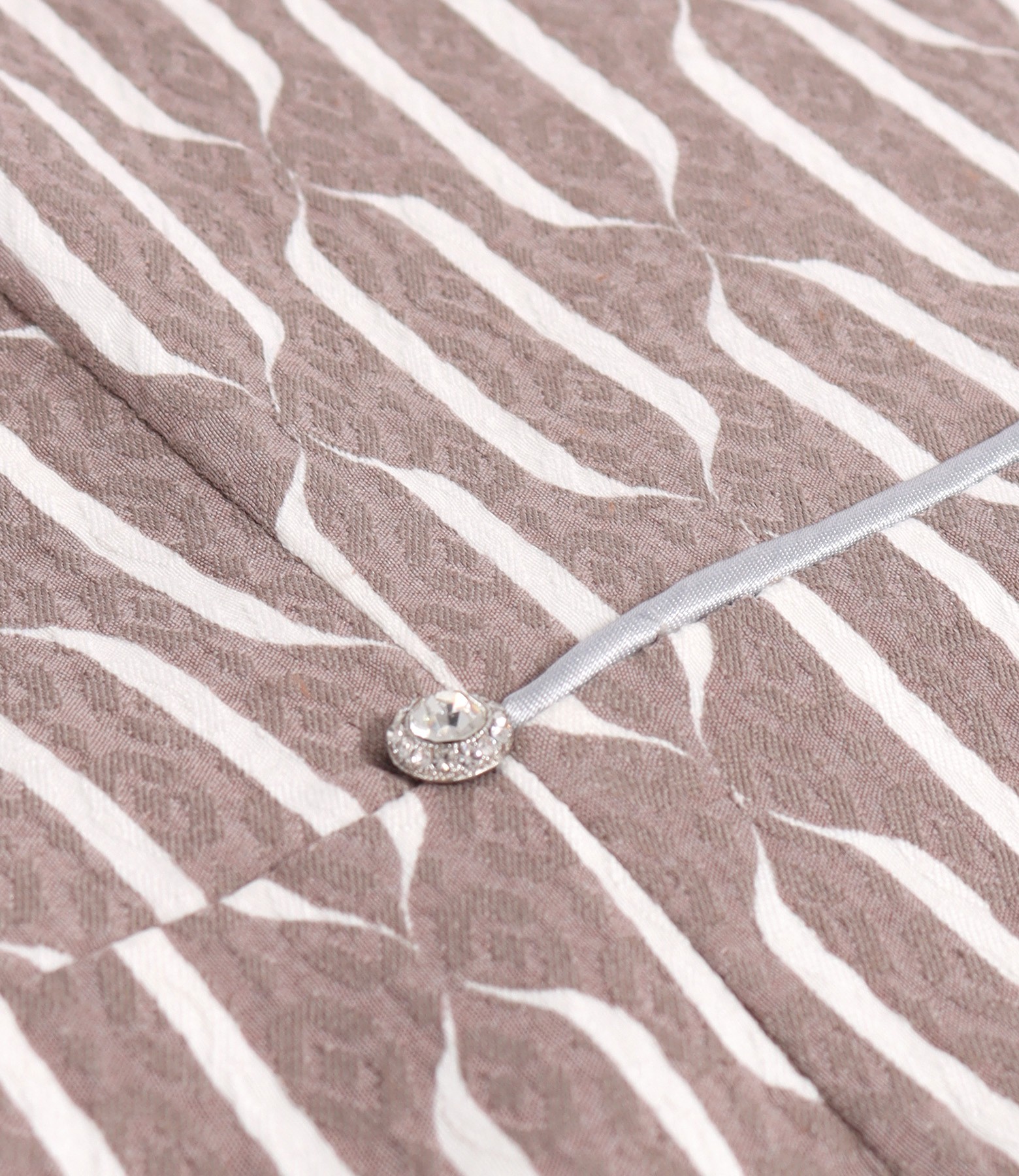 Elegant dress made of elastic cotton brocade printed with geometric motifs, unlined, sleeveless, and with a round neckline. It closes with a hidden zipper in the middle of the back.