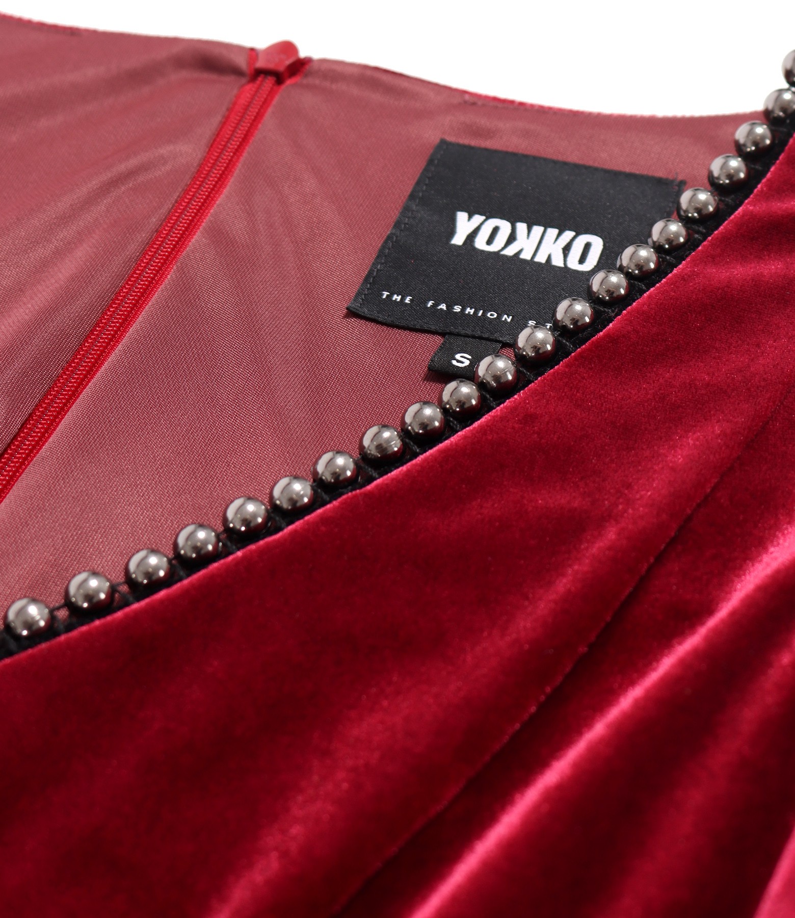 Elegant dress made of elastic velvet with pearls at the neckline (Bordeaux Red), size