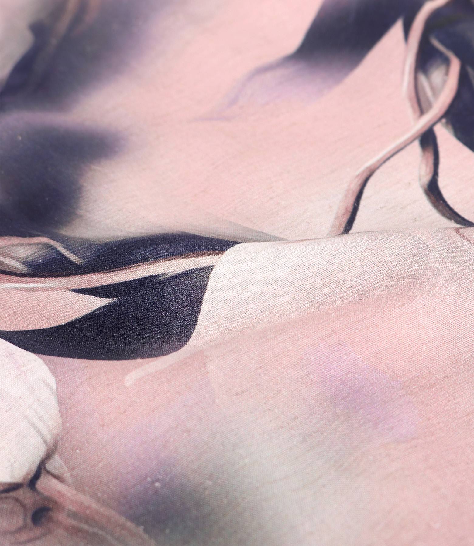 Elegant dress made of viscose with linen, printed with floral motifs, lined with viscose, with 3/4 sleeves and round neckline. It closes with a hidden zipper on the middle back.