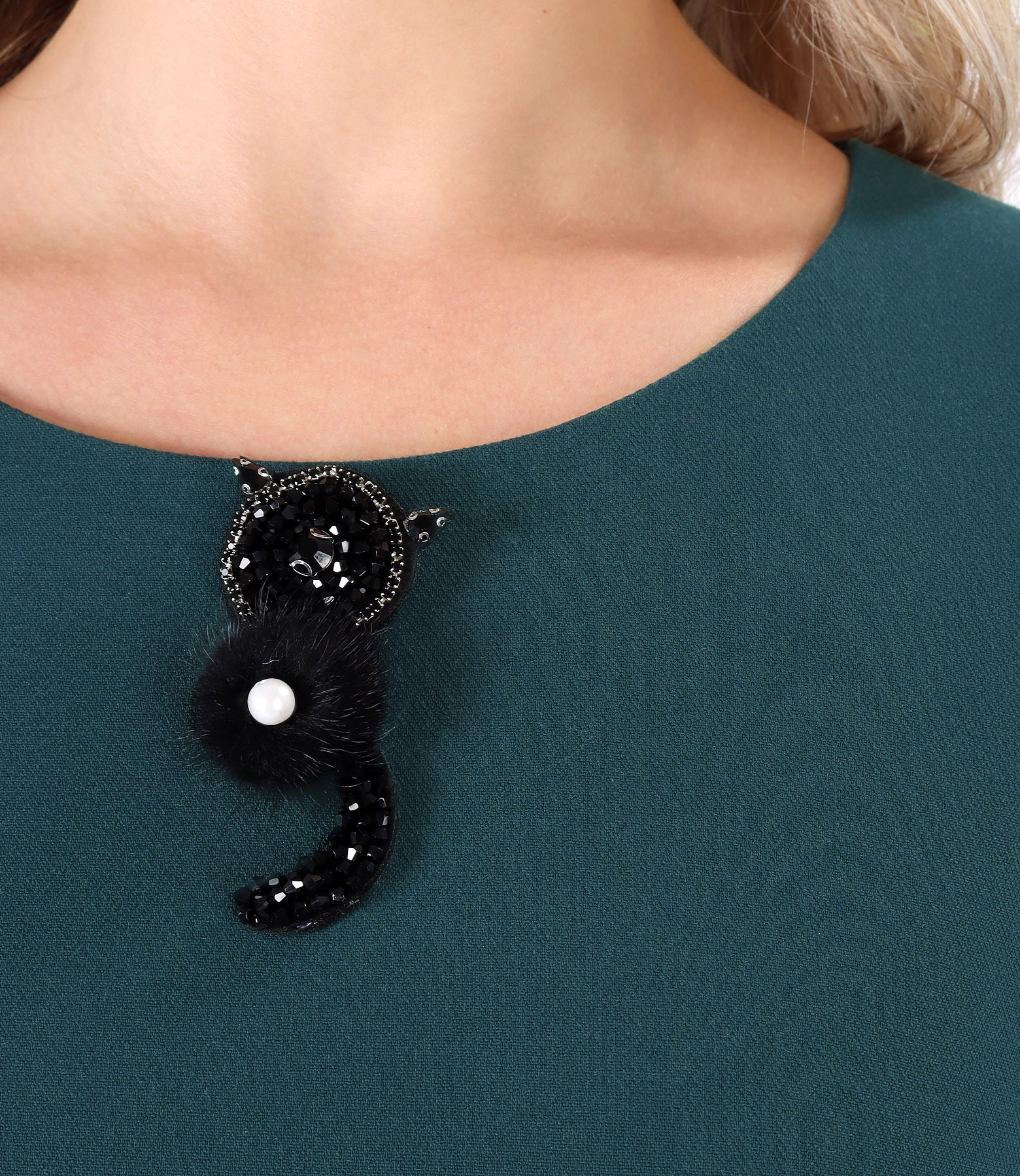 Elastic fabric dress, padded, with 3/4 sleeves, round low-cut neck and detachable brush on the decolletage. Closes with hidden zipper on the middle back.