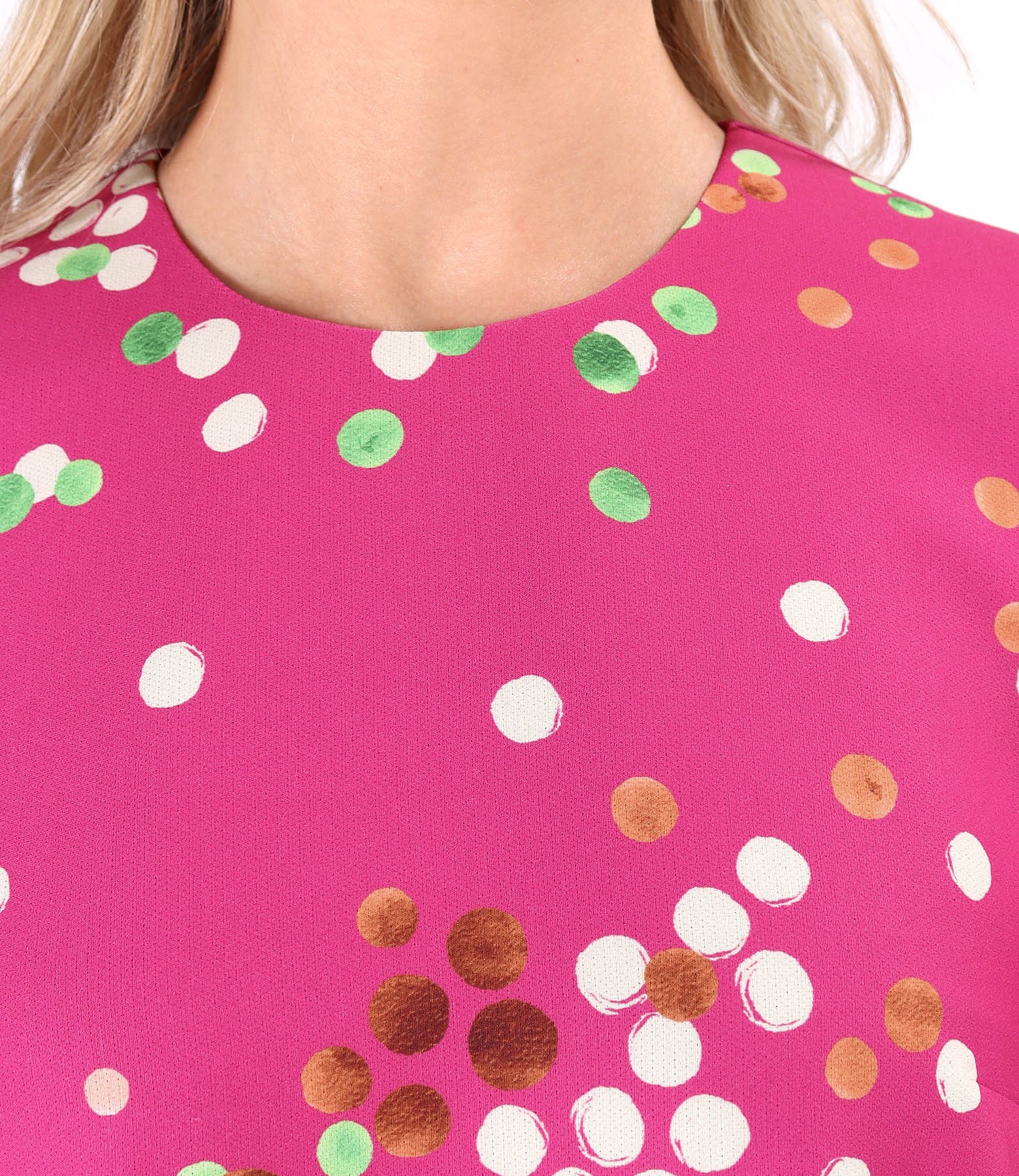 Elegant dress with frill made of elastic fabric printed with polka dots (Cyclamen), size