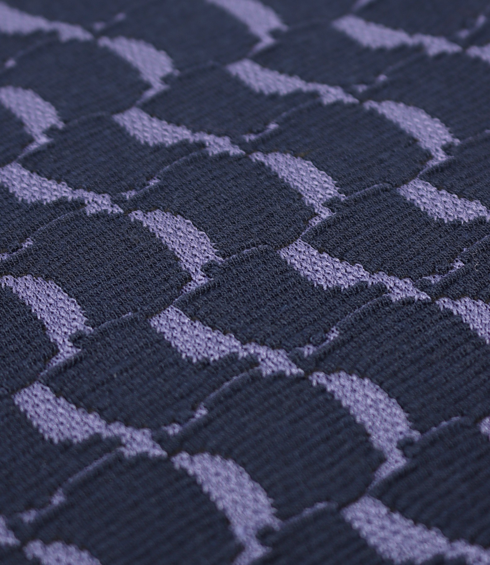 Elegant dress made of elastic viscose fabric with geometric motifs, with long sleeves and round neckline. It closes with a hidden zipper in the middle of the back.