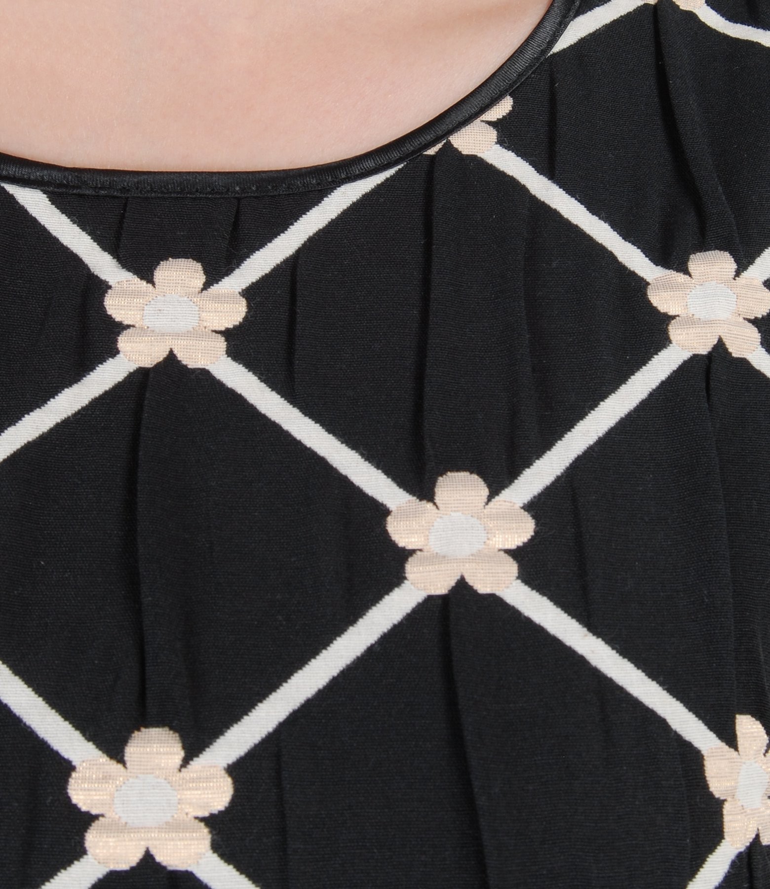 Elegant elastic cotton brocade dress with metallic thread (White-Black), size