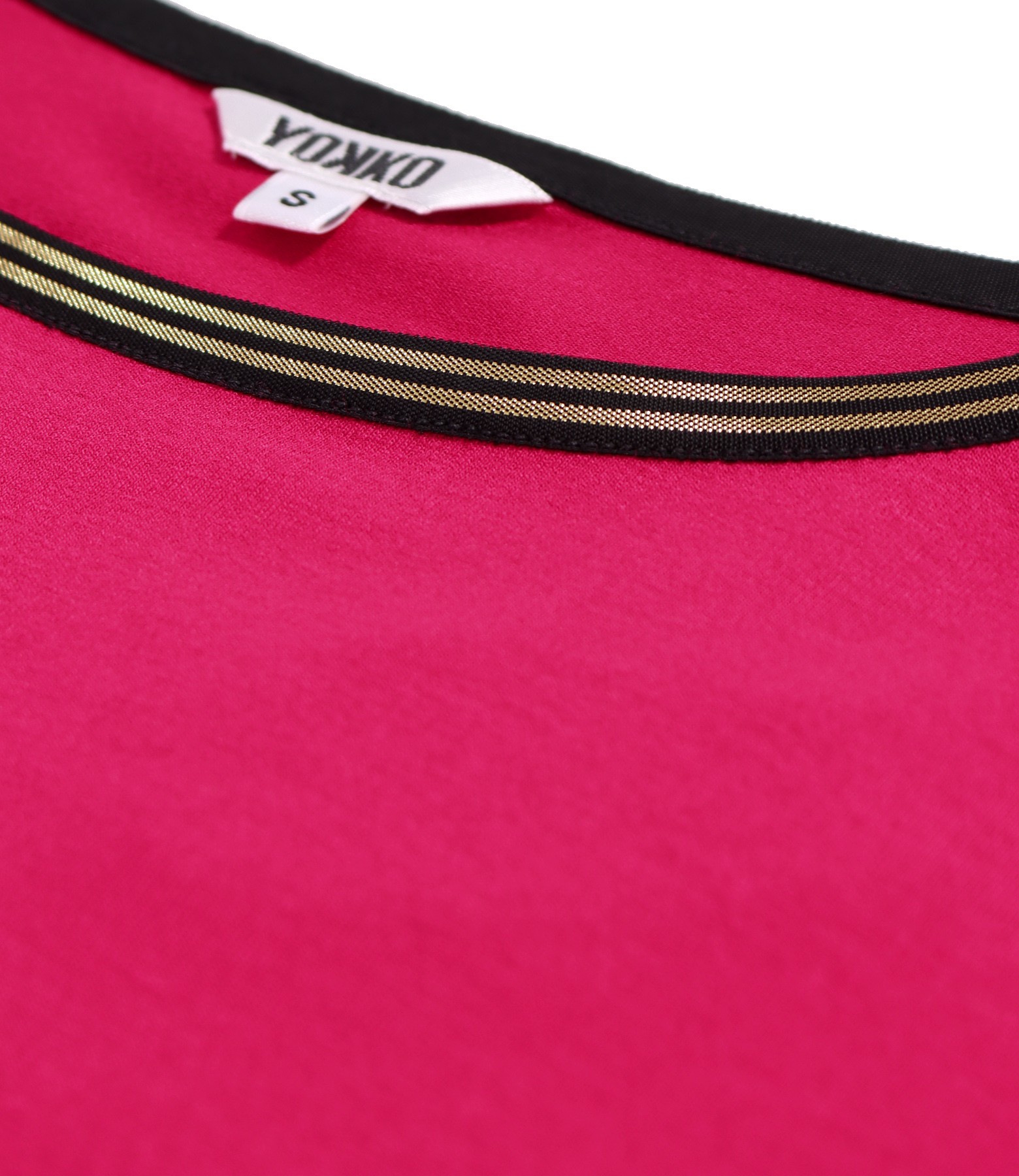 Elegant blouse made of elastic viscose jersey, with 3/4 sleeves and round neckline with golden elastic lining.