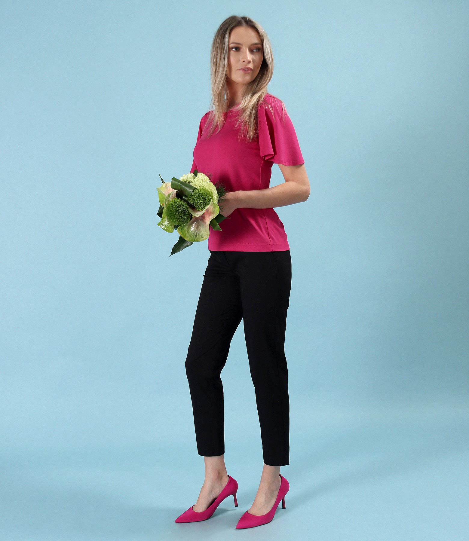 Elegant elastic jersey blouse with wide sleeves (Cyclamen), size