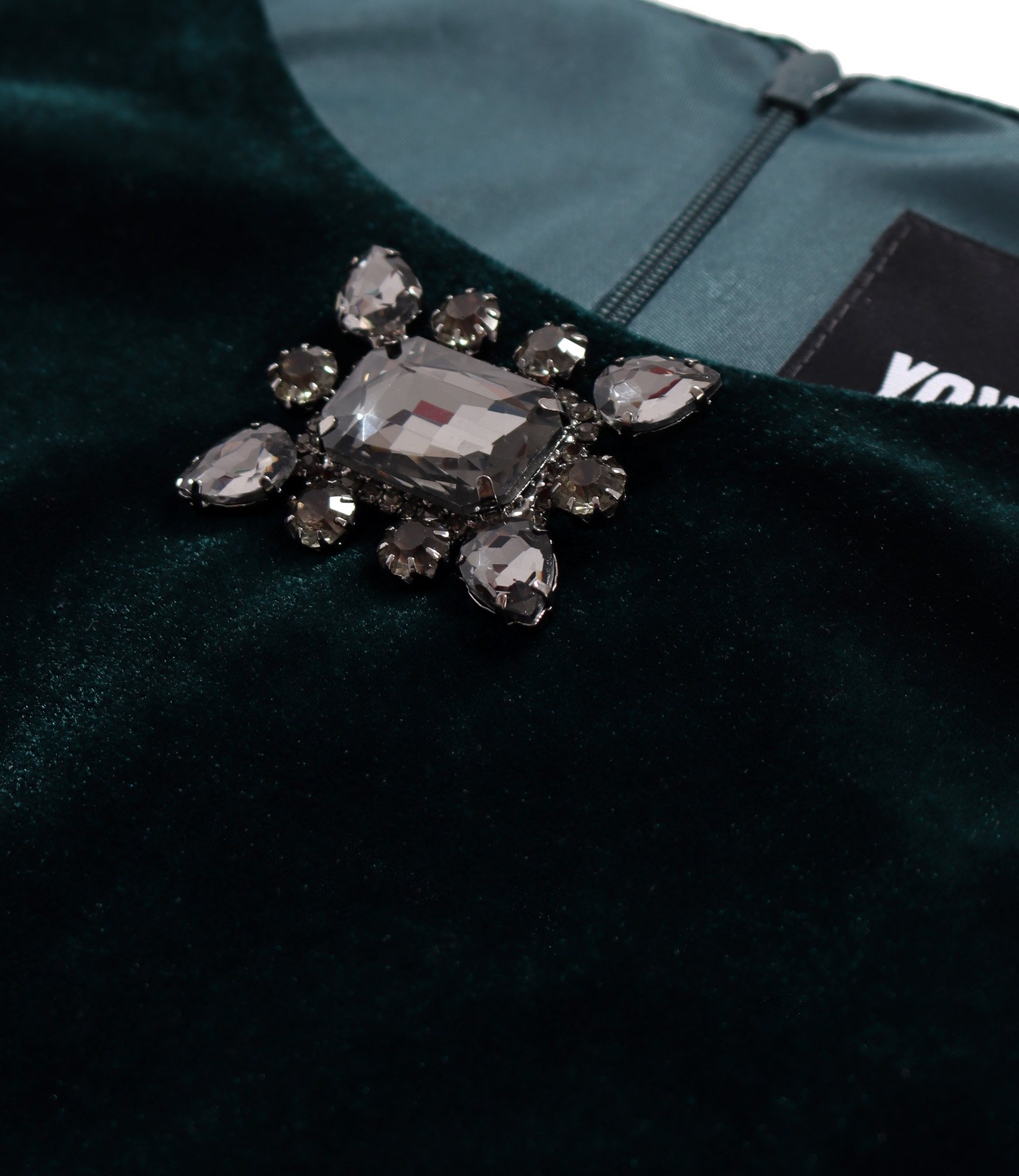 Elegant elastic velvet dress with crystal brooch (Pine green), size