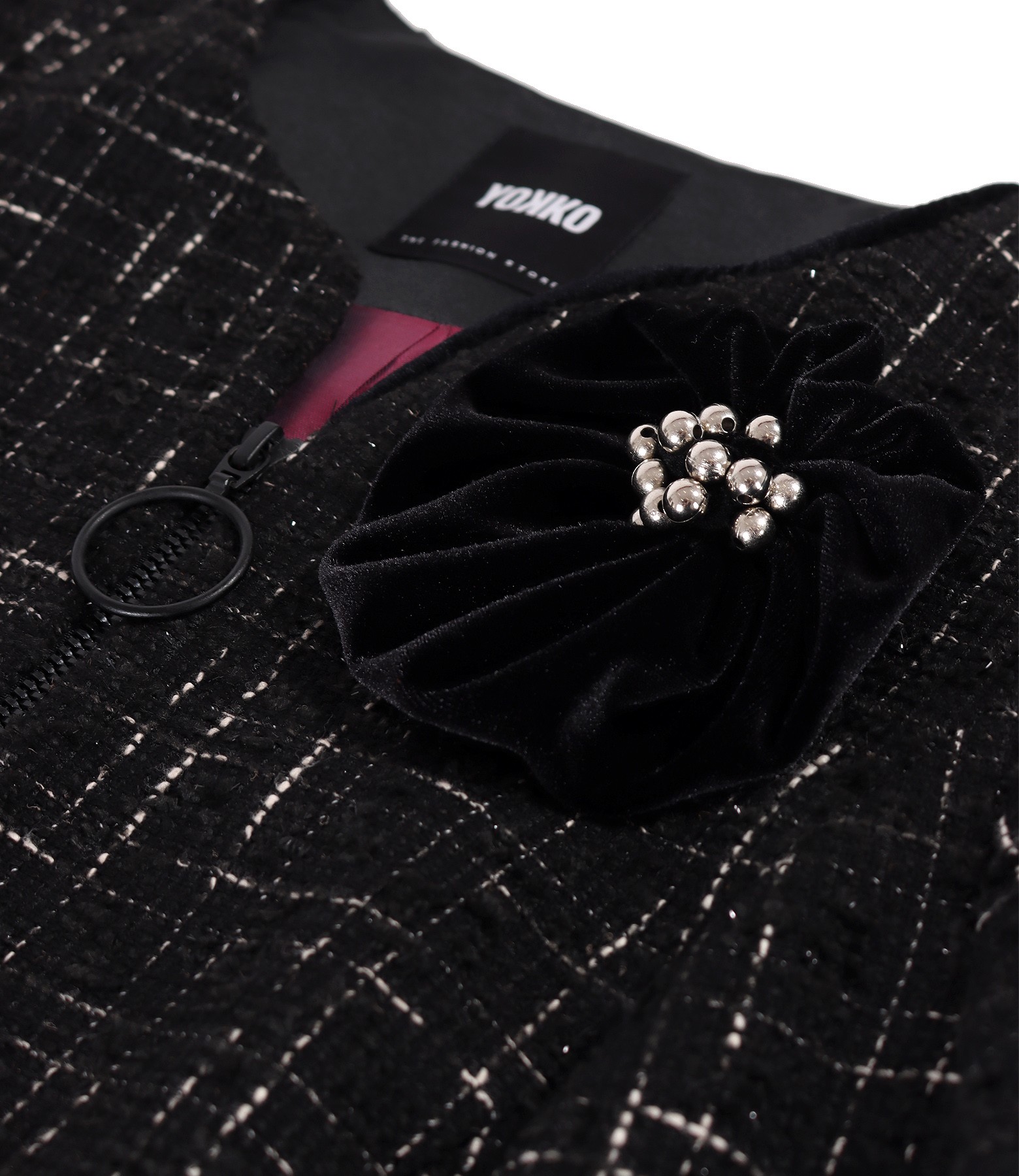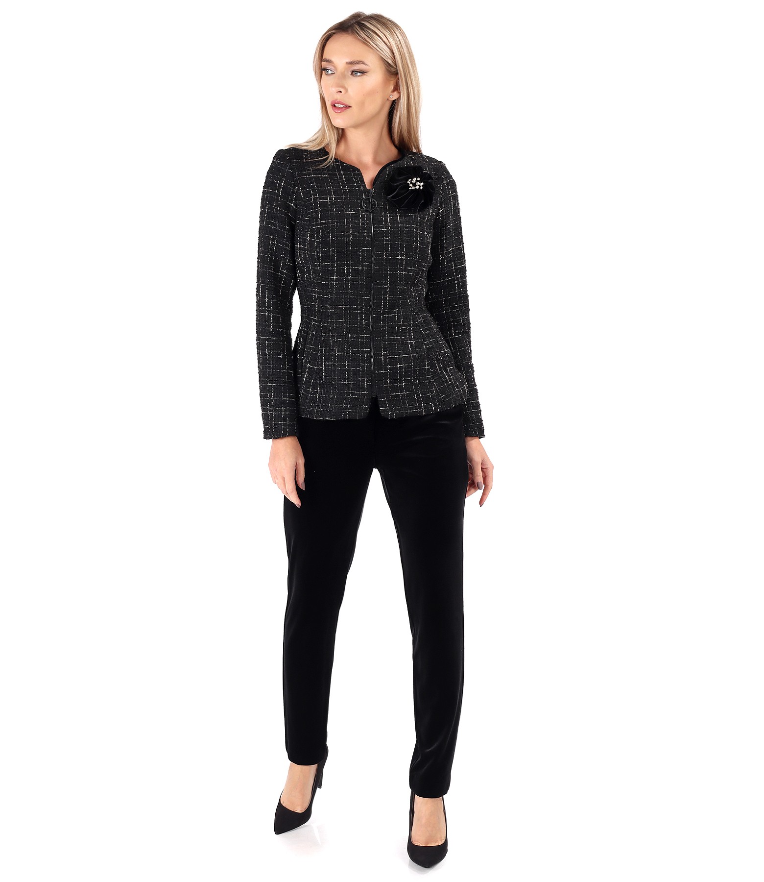 Elegant jacket made of curls with cotton and metallic thread (Black), size