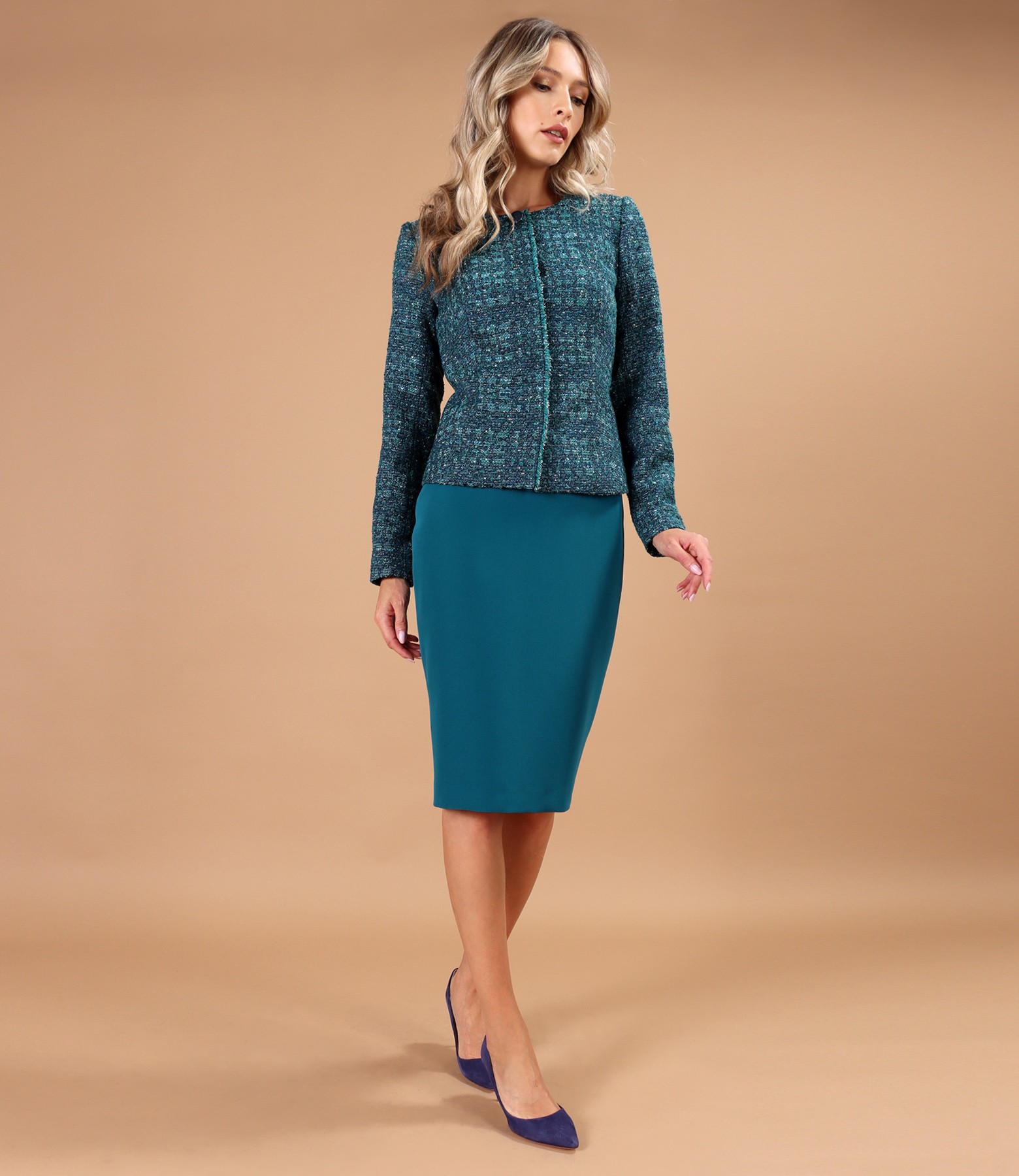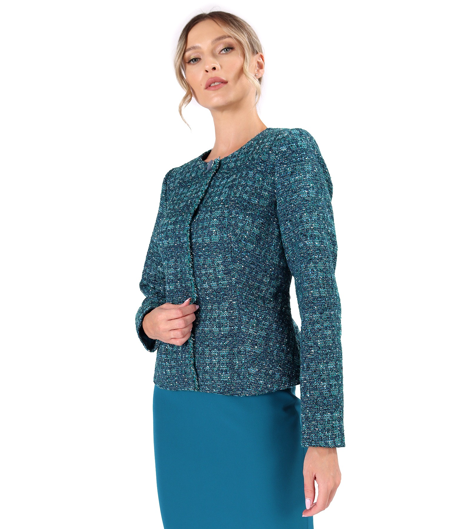 Elegant jacket made of curls with wool and lurex thread