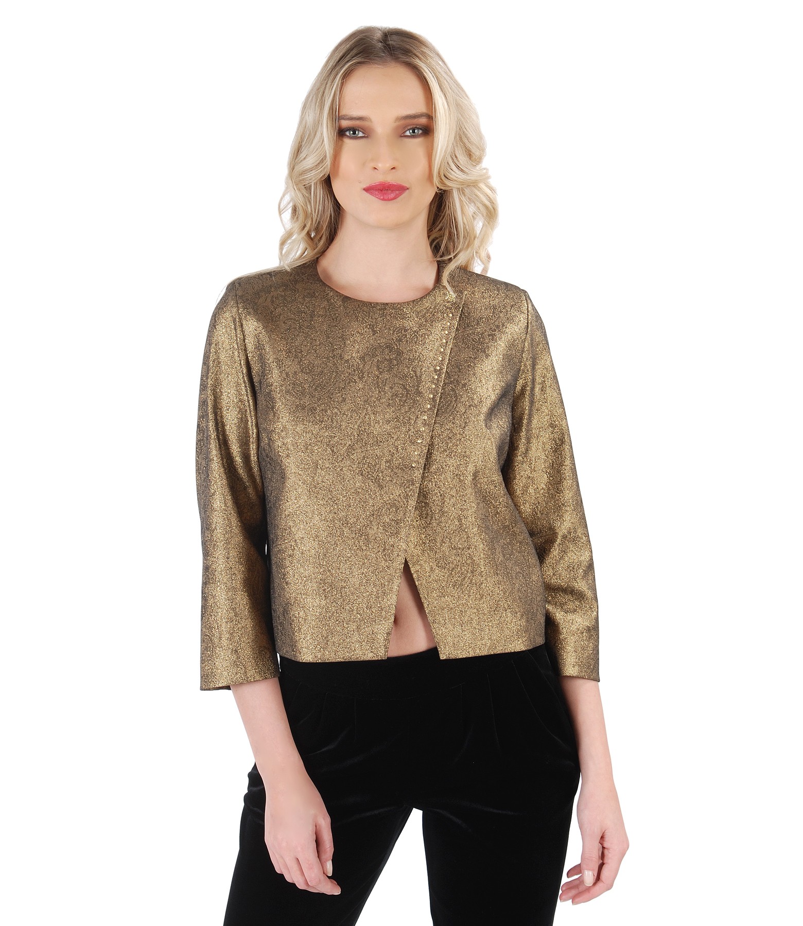 Elegant jacket made of elastic cotton with metallic applications (Golden), size