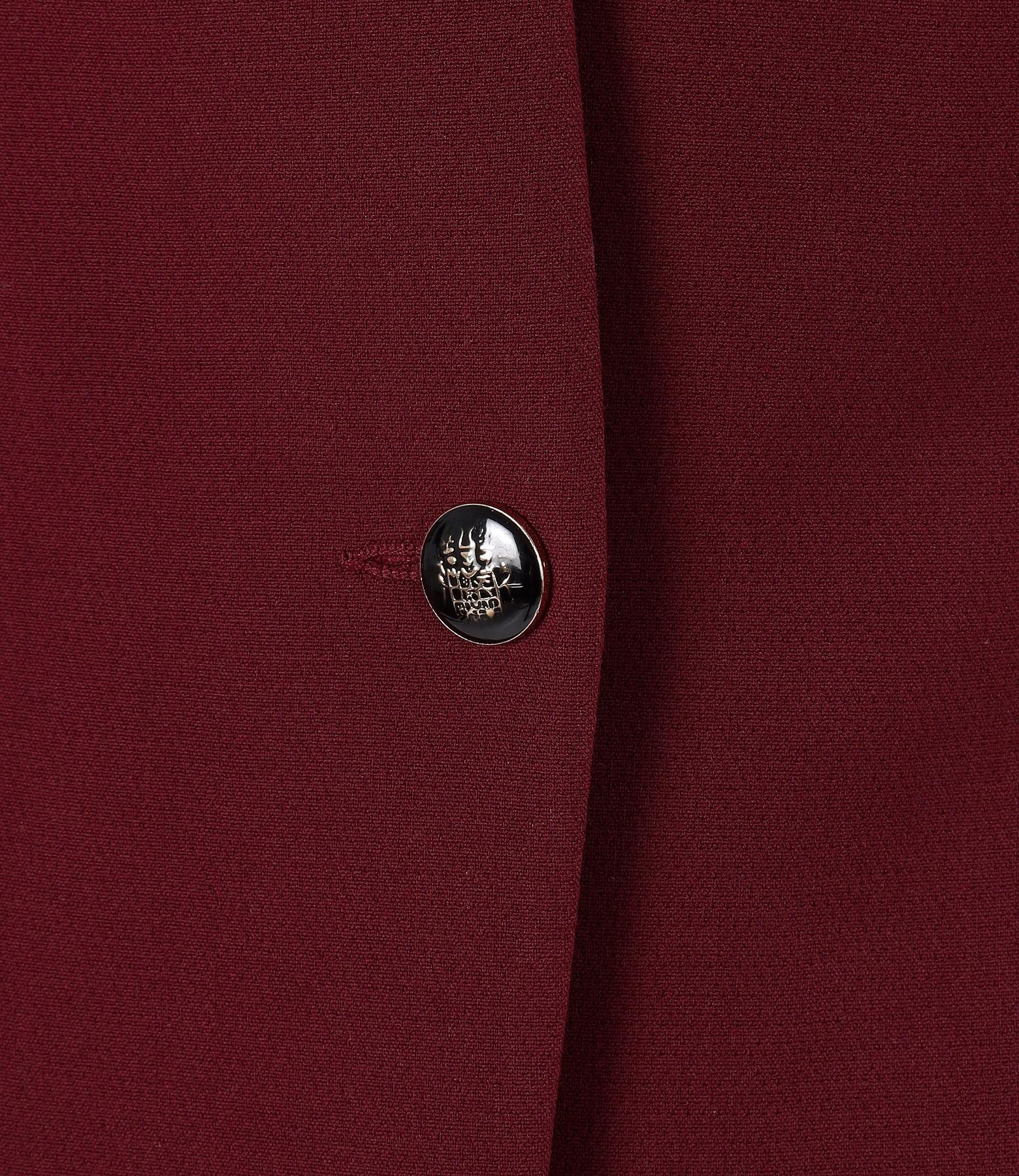 Elegant jacket made of elastic fabric, padded, with tunic collar and deep neckline. Closes with a button on the face.