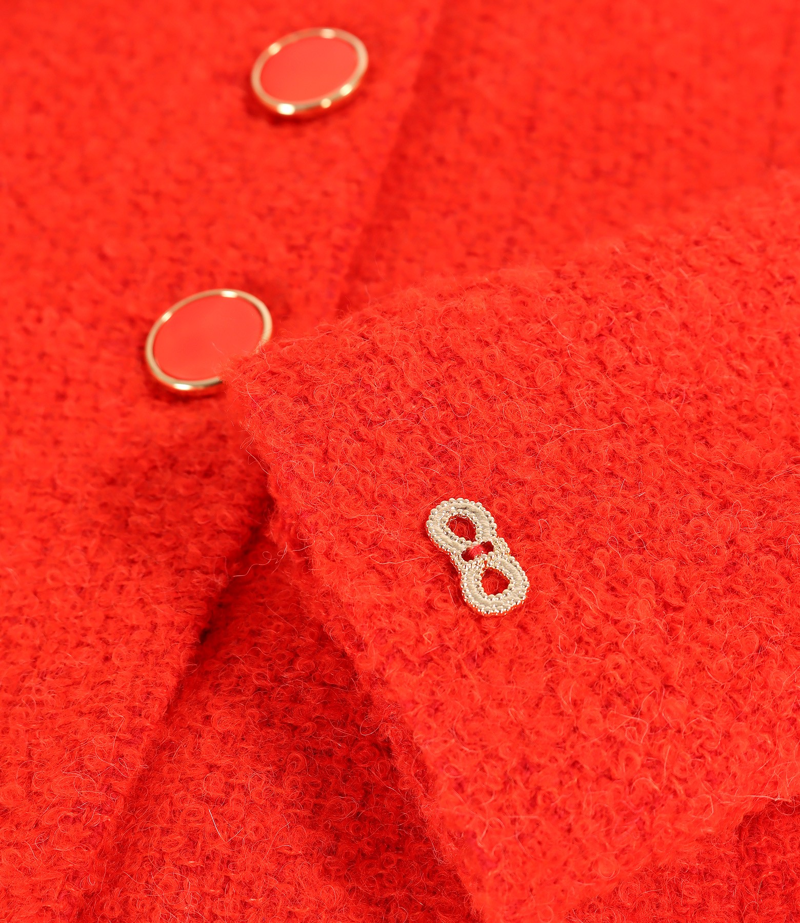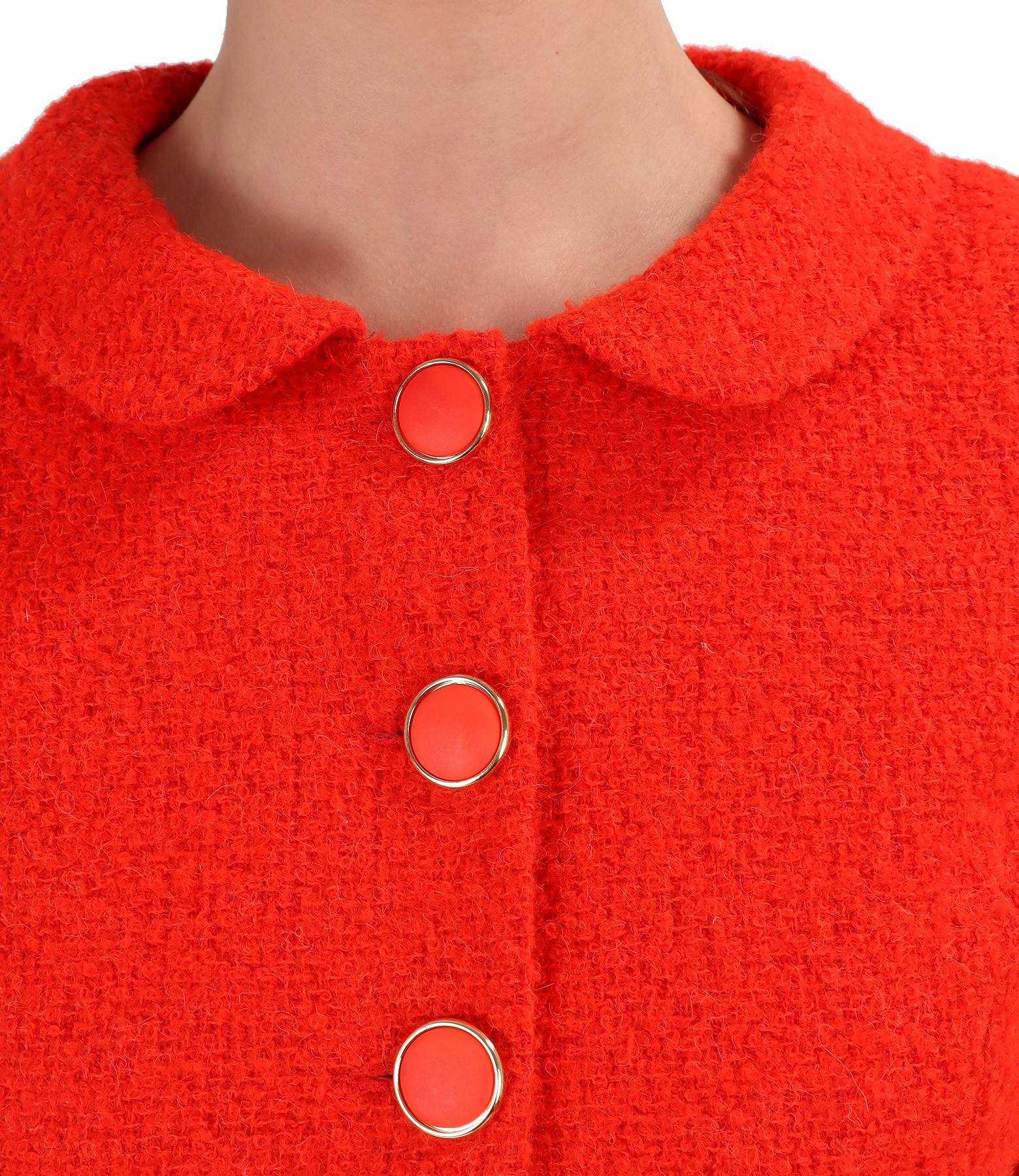 Elegant jacket with wool and alpaca, padded, with round collar. Closes with 5 buttons, up to the base of the collar.